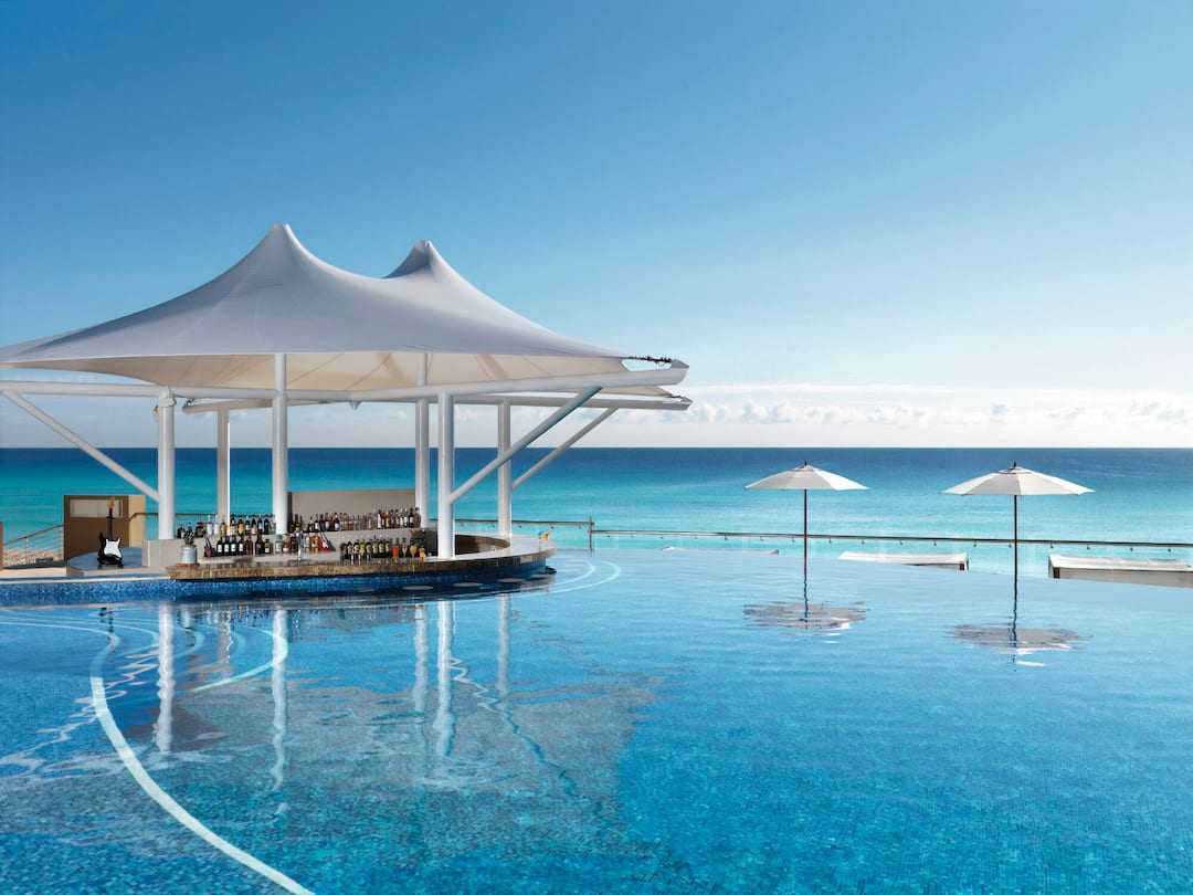 A huge lagoon-like infinity pool wiggles its way along the edge of the sand. There’s live music and a foam party most days. Cocktails in pineapples are also served at the two swim-up bars.
