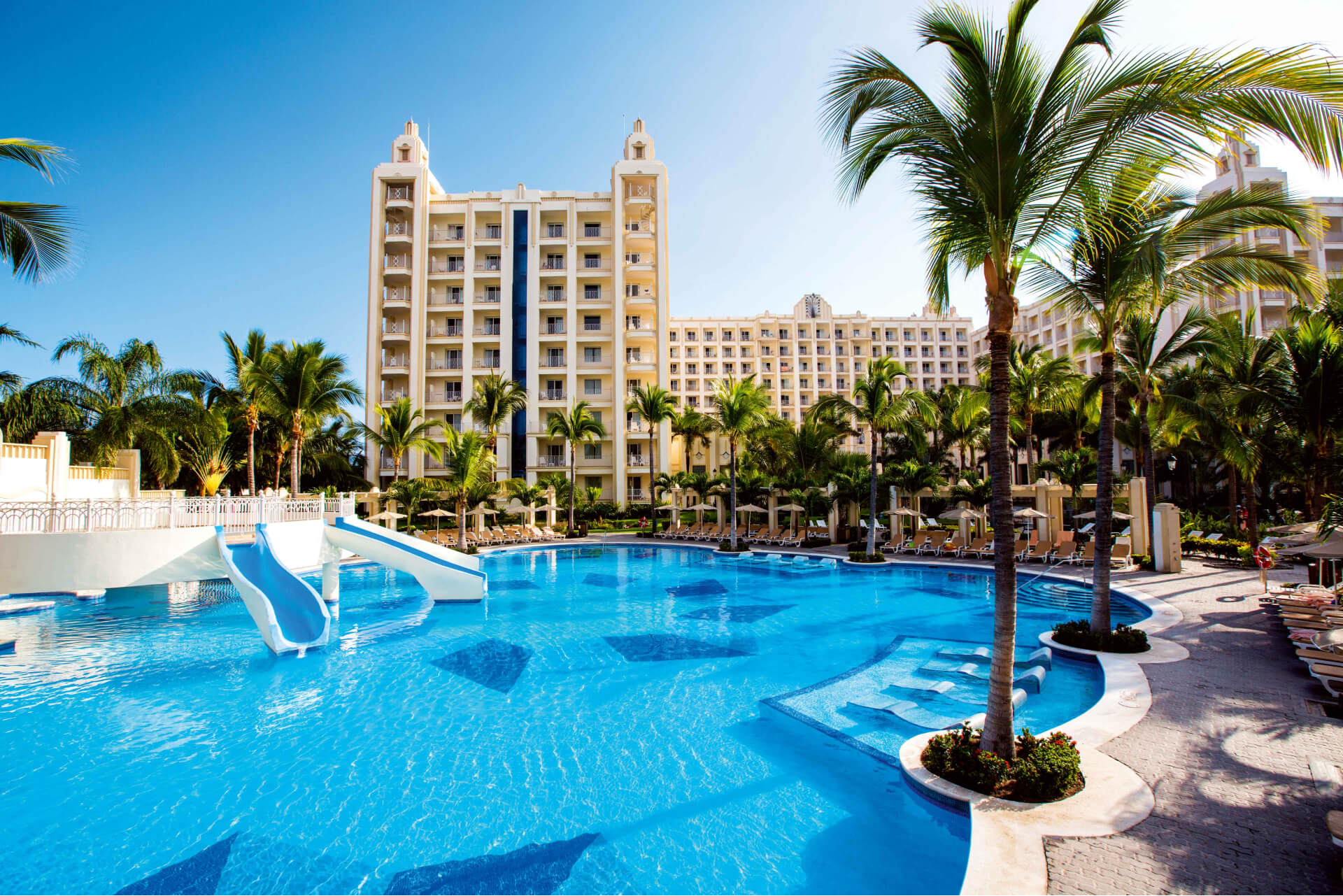 Set right on Playa de Flamingos Beach, the Riu Vallarta is a hotel with lots to offer. The focal point of this attractive property is the large swimming pool which has sunken loungers, two slides and a surrounding terrace decked out with loungers and parasols. When you’ve worked up a thirst, the swim up bar is on hand for an ice cold drink. Take your pick from four restaurants including buffet and gourmet dining options. For relaxation, head to the tempting The Renova Spa. Kids are catered for with RiuLand Kids’ Club offering fun activities for children, and grown-ups can put on their party shoes and head to Pacha nightclub which is onsite.