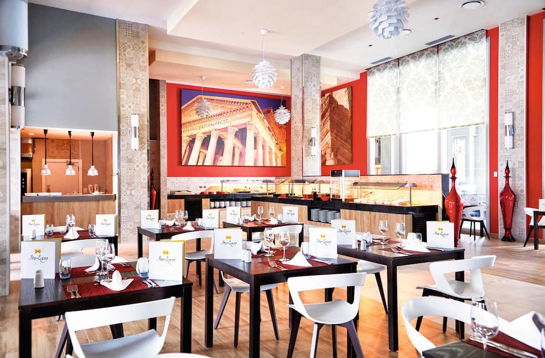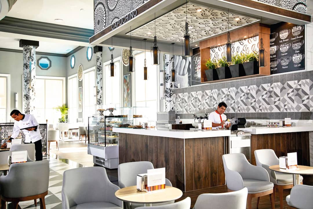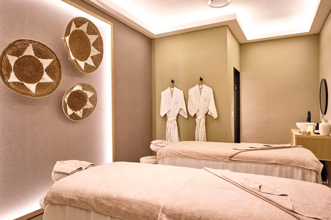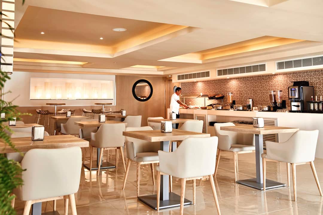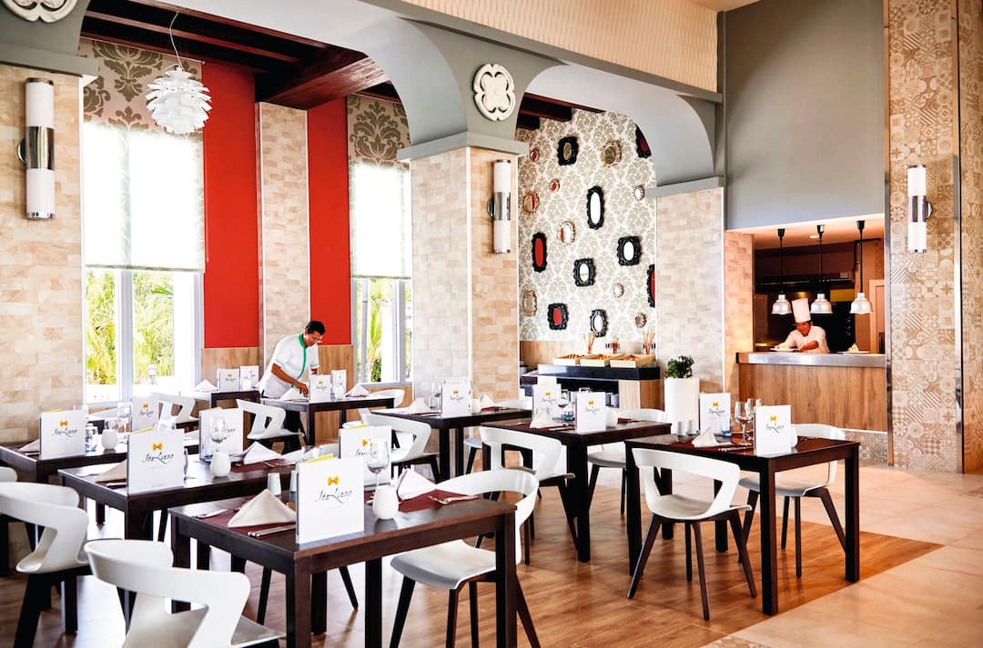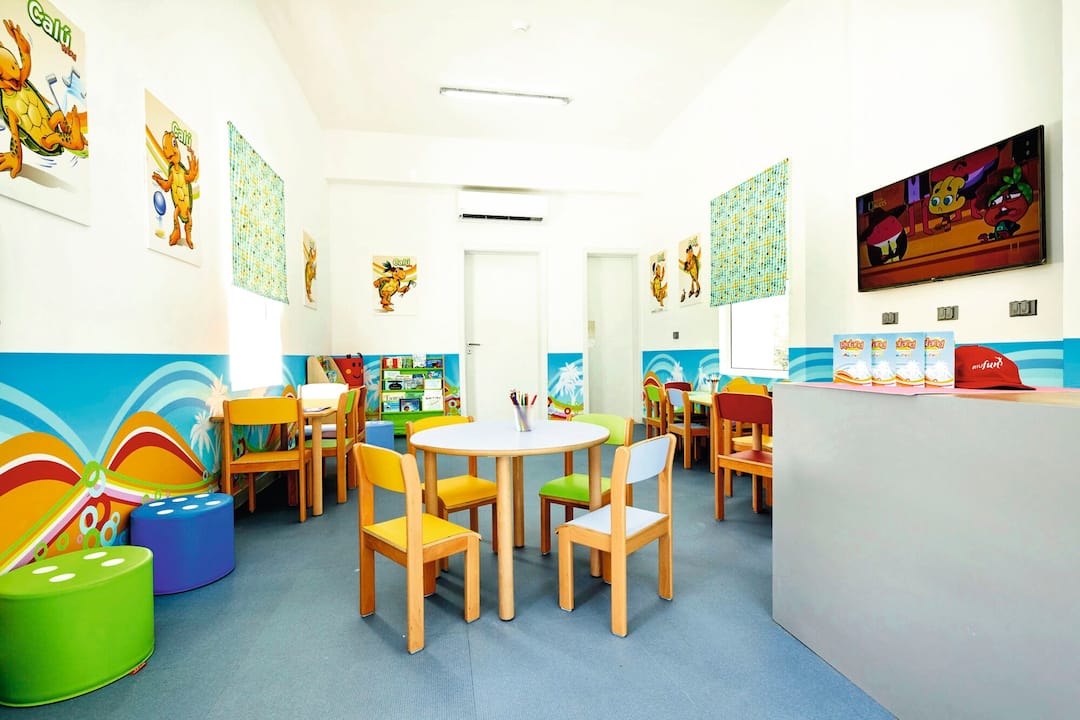 The entertainment caters to the whole family. Children get their own pool, but there are live shows and music that will bring everyone together, too. During the day, check out the water sports; there’s windsurfing, kayaking, bodyboarding and catamarans to try.