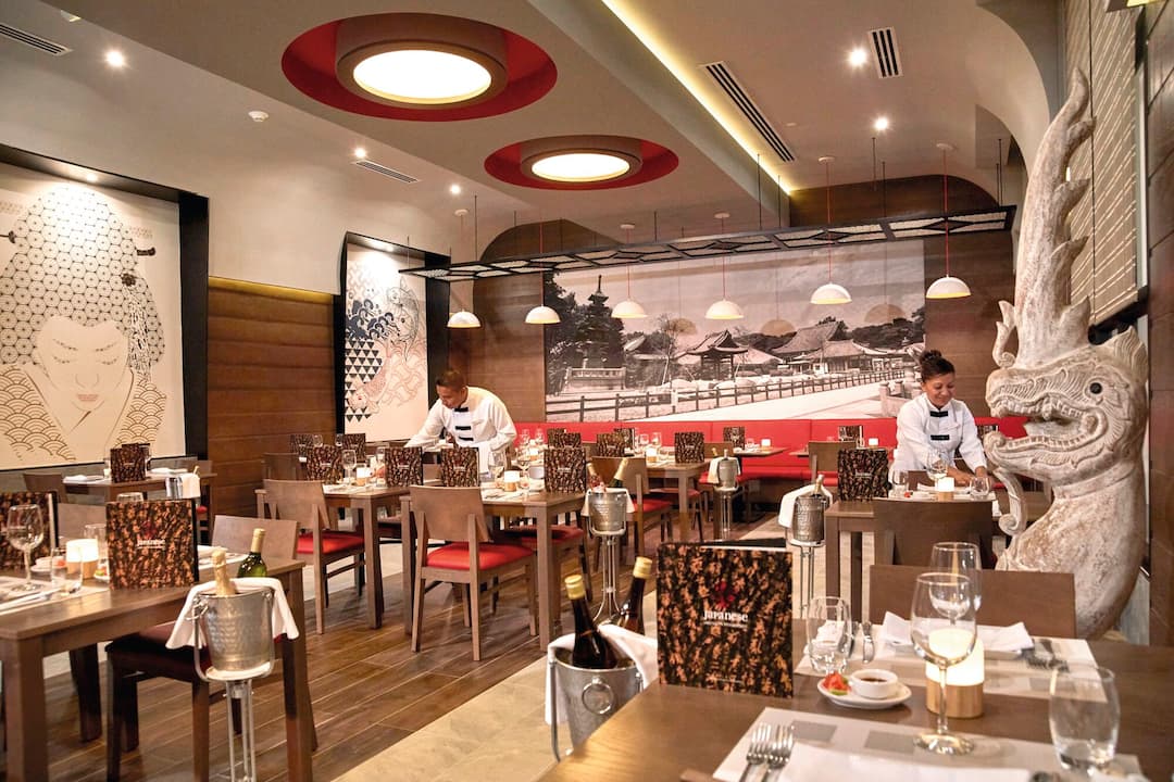 The interior of the hotel is just as impressive as the exterior, too. You’ll have the choice of five speciality restaurants and a sea-view terrace. If you fancy a quiet drink away from it all, try the four bars, including a sports bar and a cocktail bar.