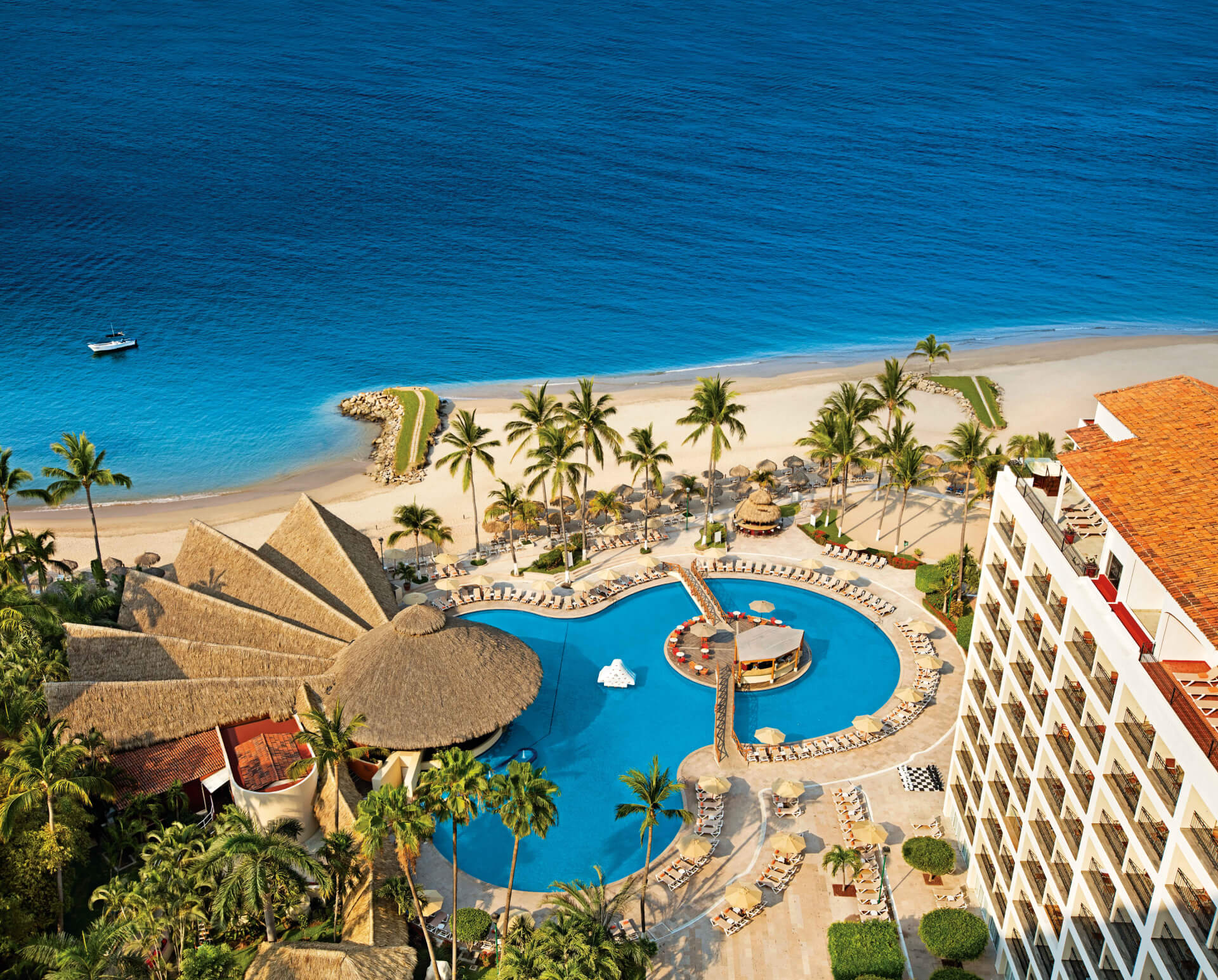 The Sunscape Puerto Vallarta Resort and Spa is just 4km from Licenciado Gustavo Diaz Ordaz Airport, and boasts its own private beach – though it’s also within walking distance of the Playa de Oro beach and Camarones Beach. The resort has an ‘Unlimited Fun’ programme, which means you can enjoy delicious package of food, tasty drinks, and dazzling entertainment from dusk until dawn. There are lots of activities on offer exclusively for grown-ups, including wine tasting. Kids, meanwhile, have a dedicated hotel-run club to keep them amused. Close to a range of shops, bars, restaurants and the old town of Vallarta, you’re well placed in the heart of the bay for day trips outside the resort.