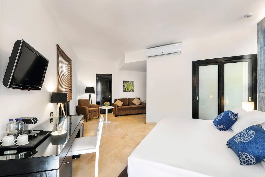 With luxurious interiors, an idyllic beachfront setting and a chilled out pool scene, a stay at the Ocean Maya Royale By H10 is more of an event than a holiday. Swim-up bars and open-air massages will ensure all those stresses and strains just melt away with a stunning beach just footsteps away. If you prefer to work on that tan sand-free, the two onsite pools with spacious lounger-adorned terraces will more than suffice. Those wanting to get those endorphins flowing can head to the hotel’s PADI Diving Centre, check out the three tennis courts or try snorkelling or kayaking. Add a staggering selection of restaurants, bars and a luxury spa and there’s plenty to smile about at this high-end hotel.