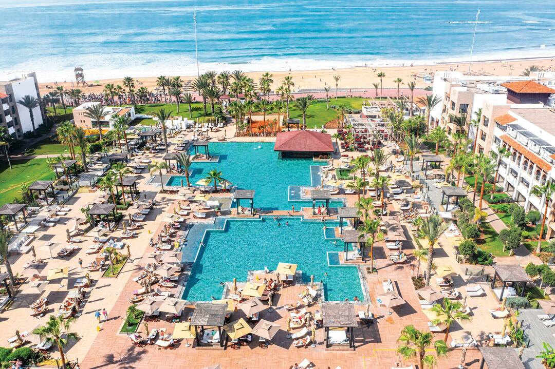 Part of the internationally recognised Riu chain, this hotel is the newest addition to the family, offering something new for holidays to Morocco. With hot temperatures expected all year round, it’s no surprise that there are over four pools to cool off in as well as two beach pools and an indoor option, too. After a long day of sunning, there are two themed restaurants and a main buffet where guests can recharge before settling in to enjoy the nightly entertainment. The rooms here at Riu Palace Tikida Agadir are made with such a high attention to detail that relaxing is practically mandatory, the light and airy spaces are cool and inviting with balconies offering views of the world beyond.