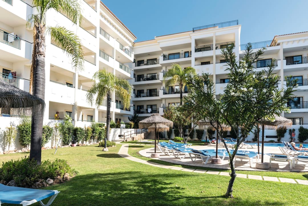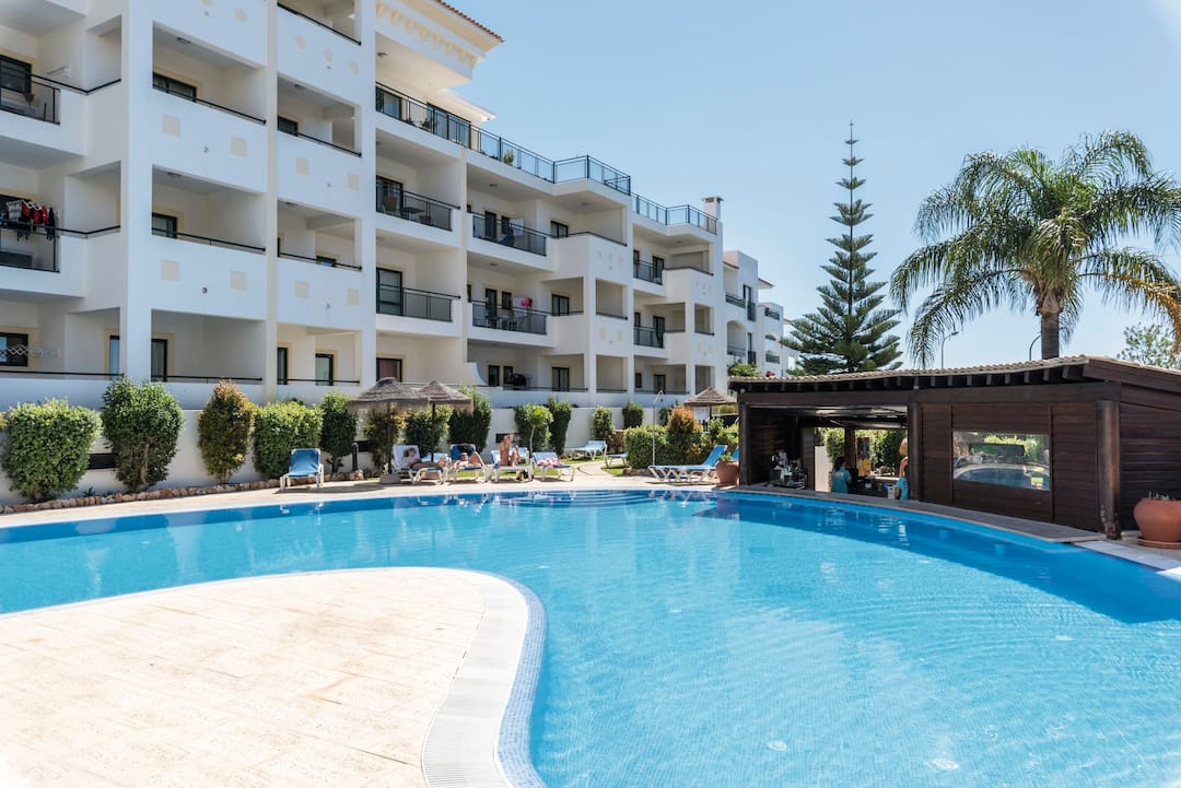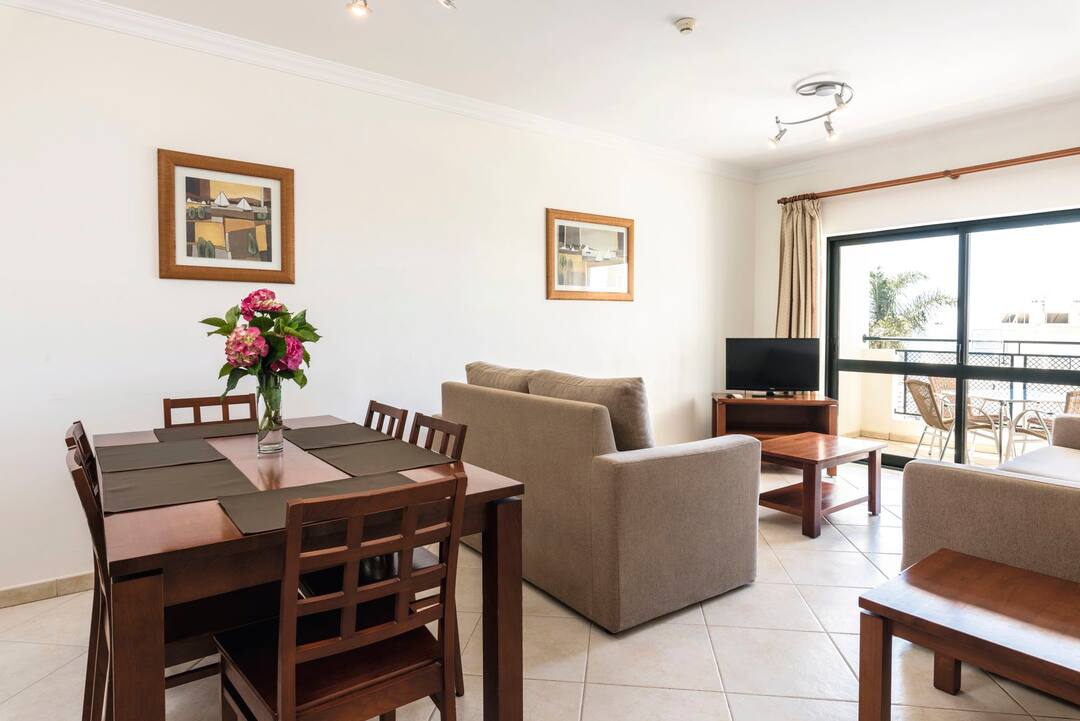 From almost everywhere in the hotel, you’ll have sweeping views of Albufeira and the Atlantic Ocean. The interiors here are lovely. They’re also bright because sunlight streams in through floor-to-ceiling windows. All the apartments are white and are finished with simple furniture and sun-trap balconies.