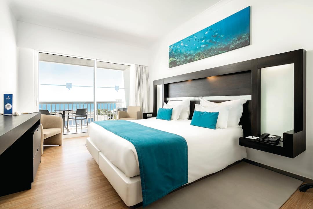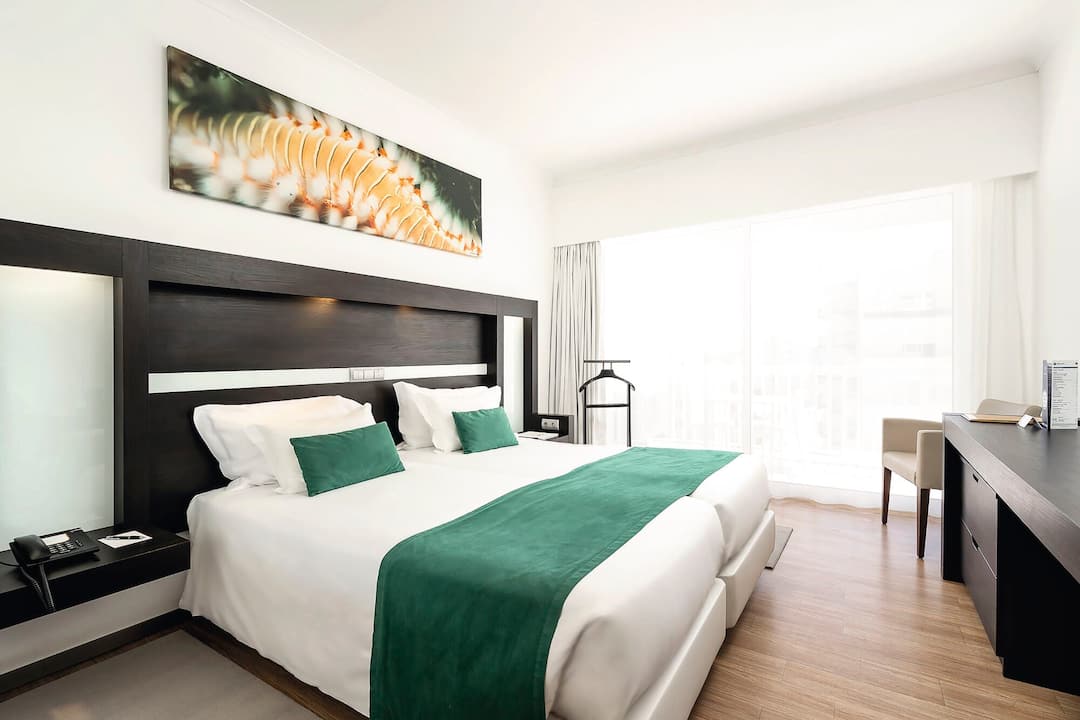 The Jupiter Algarve Hotel has an incredibly polished look. The pool’s very smart and is framed by a sun terrace with lime-green loungers and pale parasols. When you fancy a change of scenery, the hotel overlooks Praia da Rocha’s beach, so you’re only a short walk away from the tempting sand.