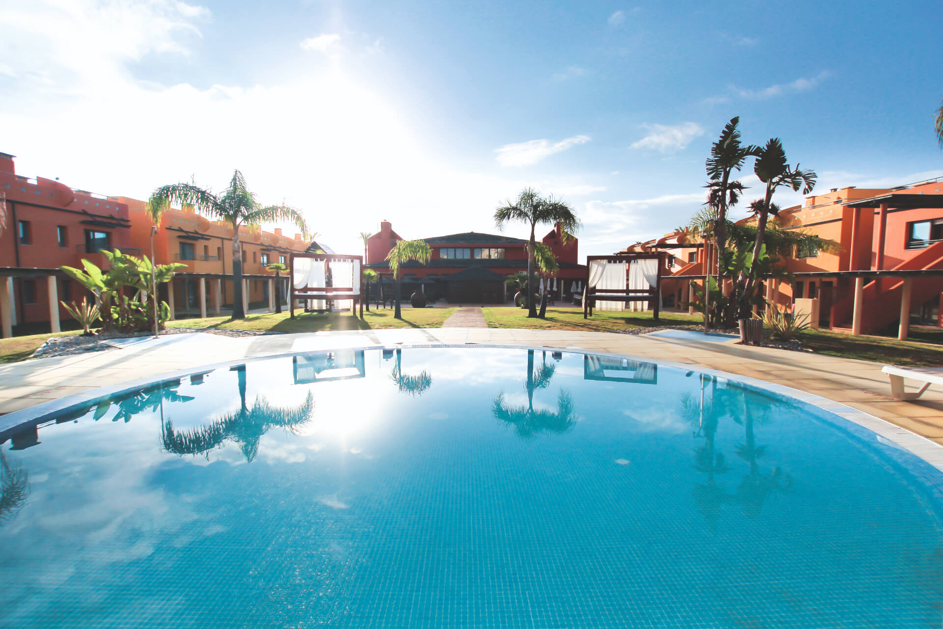 Inside, the cream-coloured rooms come with up-to-date kitchenettes, flat-screen TVs and private balconies.
