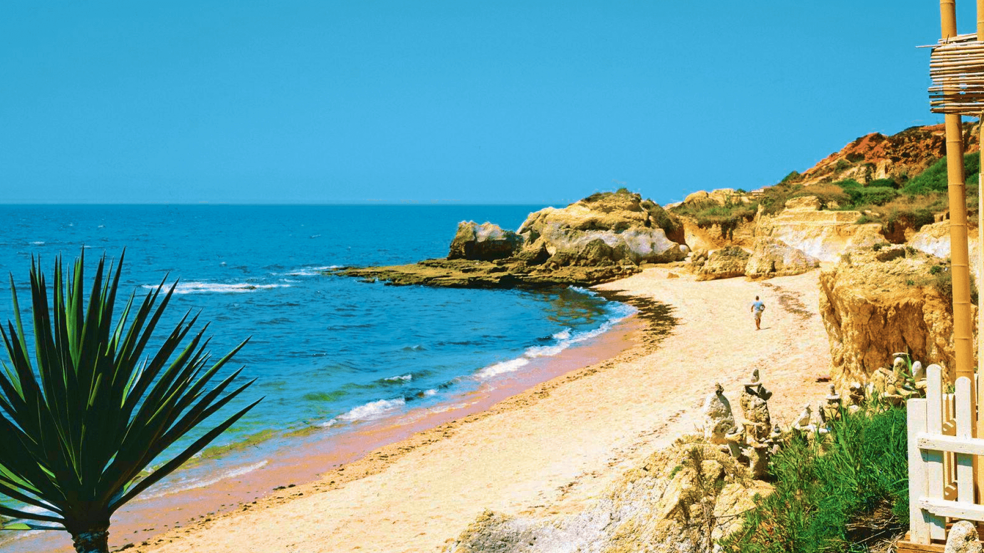 The closest beach, a five-minute drive away, is Praia Da Gale. You descend onto this sandy Blue Flag beach via cliffside steps and your instant reaction will be bliss. At five kilometres long it’s very family friendly with caves and rock pools for the kids, and parents, to explore.