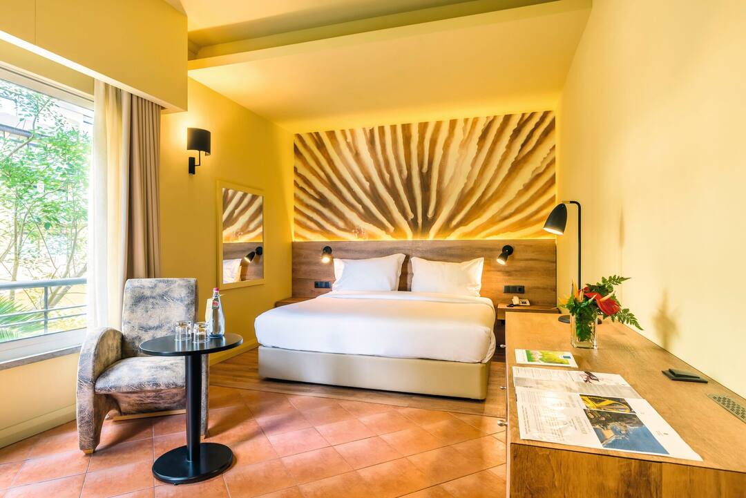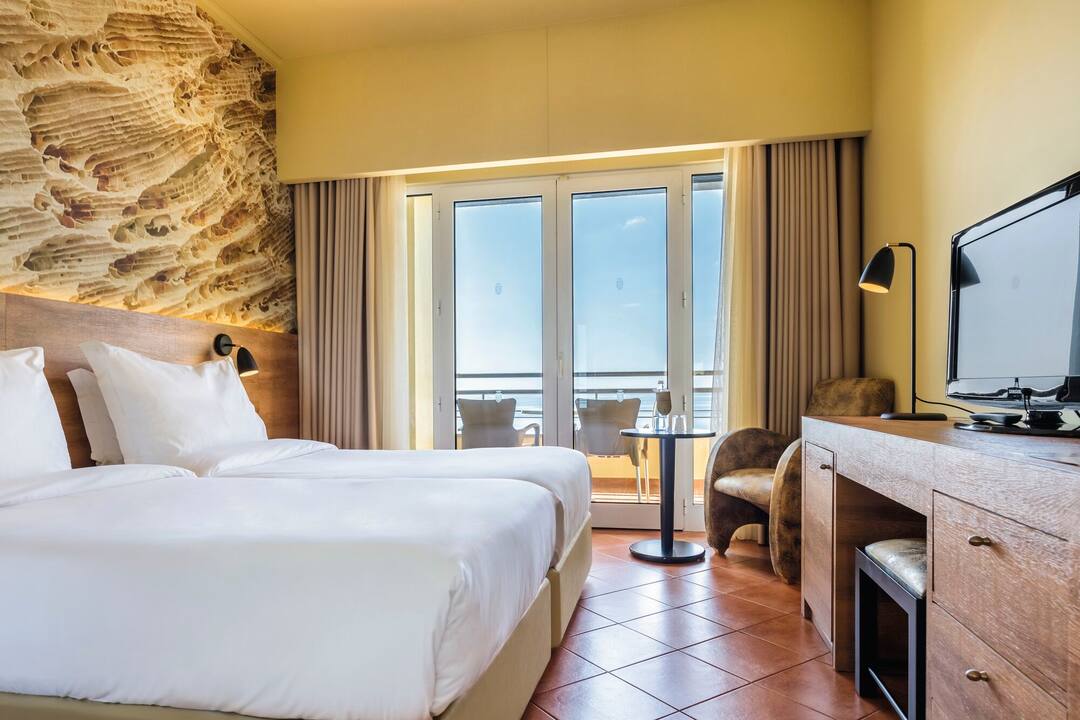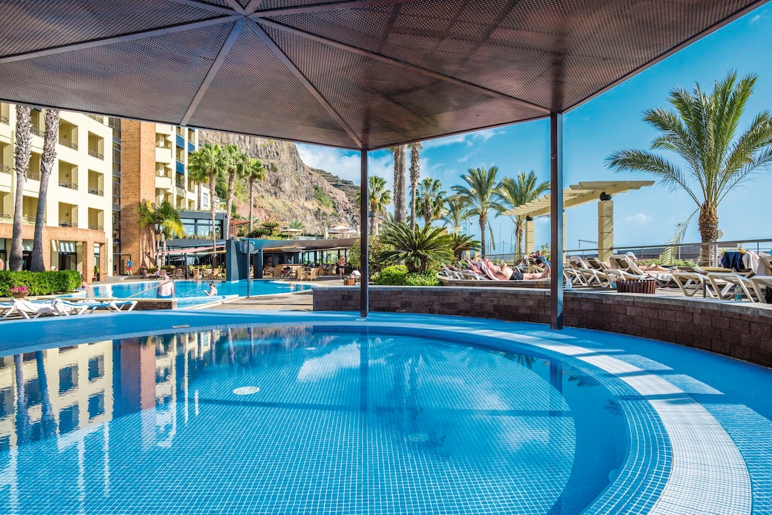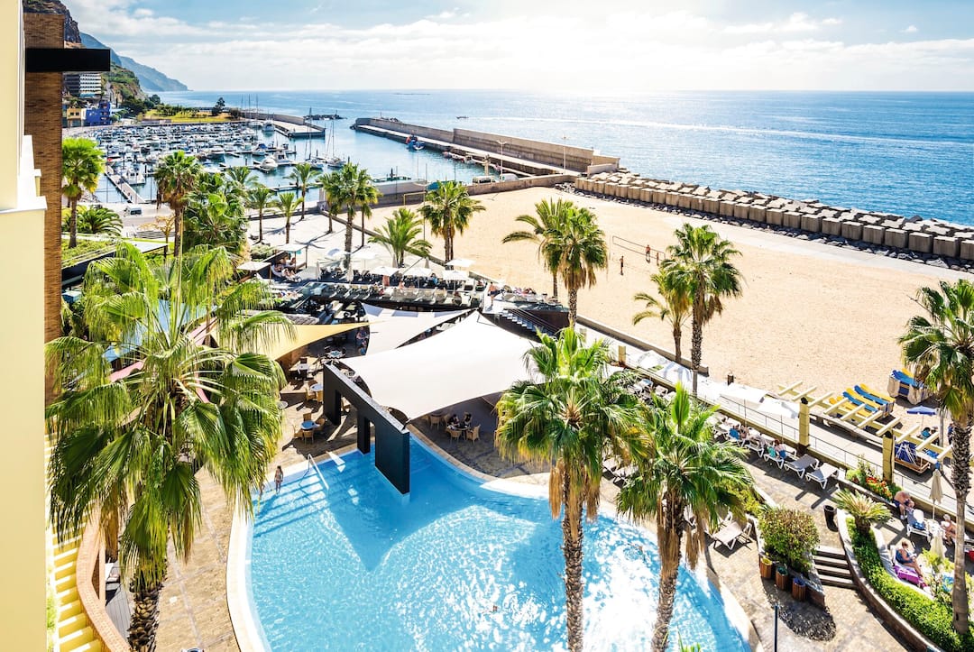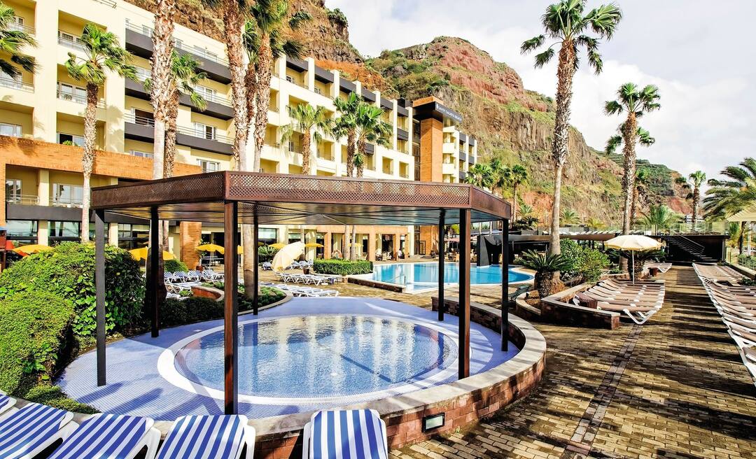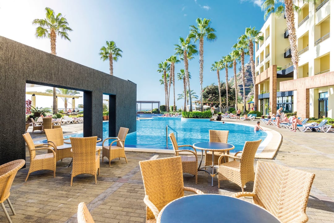 Calheta Beach enjoys a winning location on the golden sands of Calheta Beach at the foot of dramatic cliffs. The hotel boasts a large indoor and outdoor pool with sea views and sunbeds, and indoor and outdoor pools for the little ones, too. A well-equipped gym and spa provide the perfect excuse to indulge in plenty of pampering, while the on-site restaurants and bars deliver on a great night out. The hotel offers plenty of activities for all ages, including Portuguese lessons and aqua-aerobics sessions. Rooms are modern and fresh, with air-conditioning supplied as standard. Sea views are available as an optional extra.