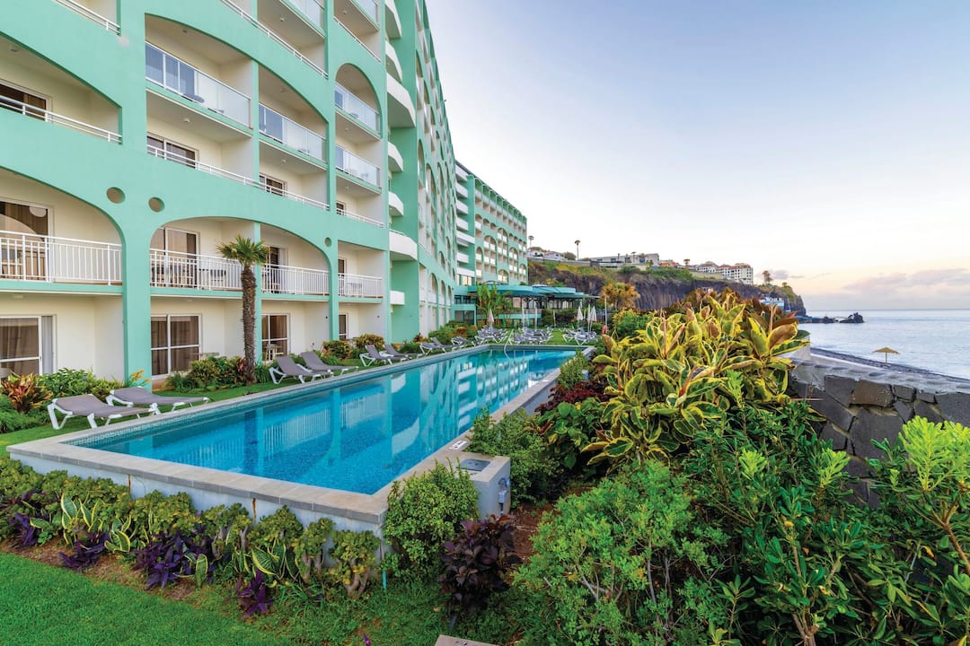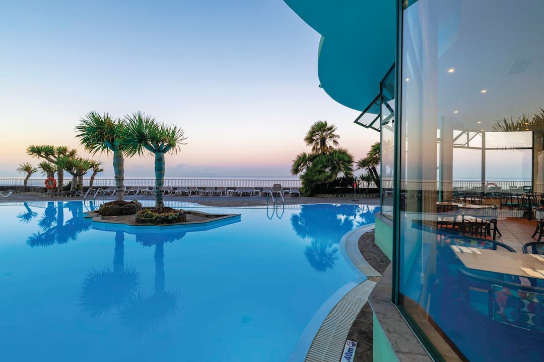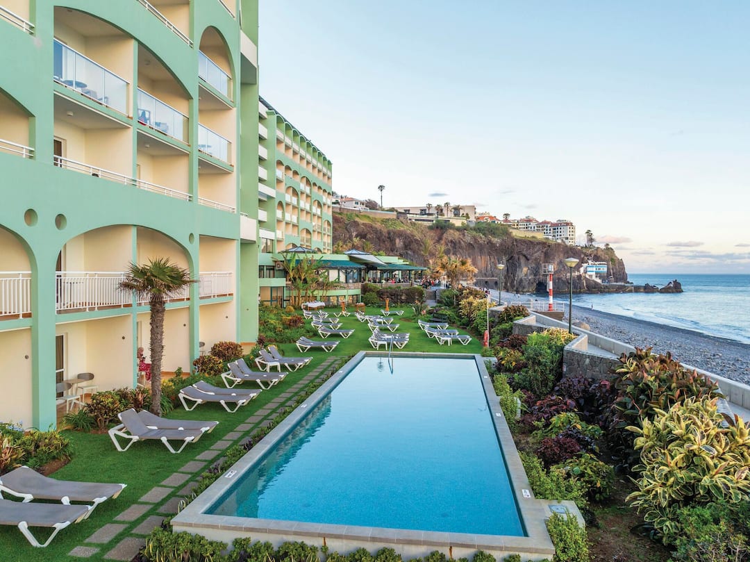 The Pestana Ocean Bay All Inclusive Resort nestles close to the pebbly beaches and warm seas of Praia Formosa, and is close to all the excitement and activity that Funchal has to offer. In the resort, there’s an impressive restaurant where you can get a bite to eat, enjoy a cocktail and watch the sun set over the Atlantic Ocean. Pestana Ocean Bay All Inclusive Resort has an art deco aesthetic, modern facilities and has a unique programme of music and entertainment six nights a week.