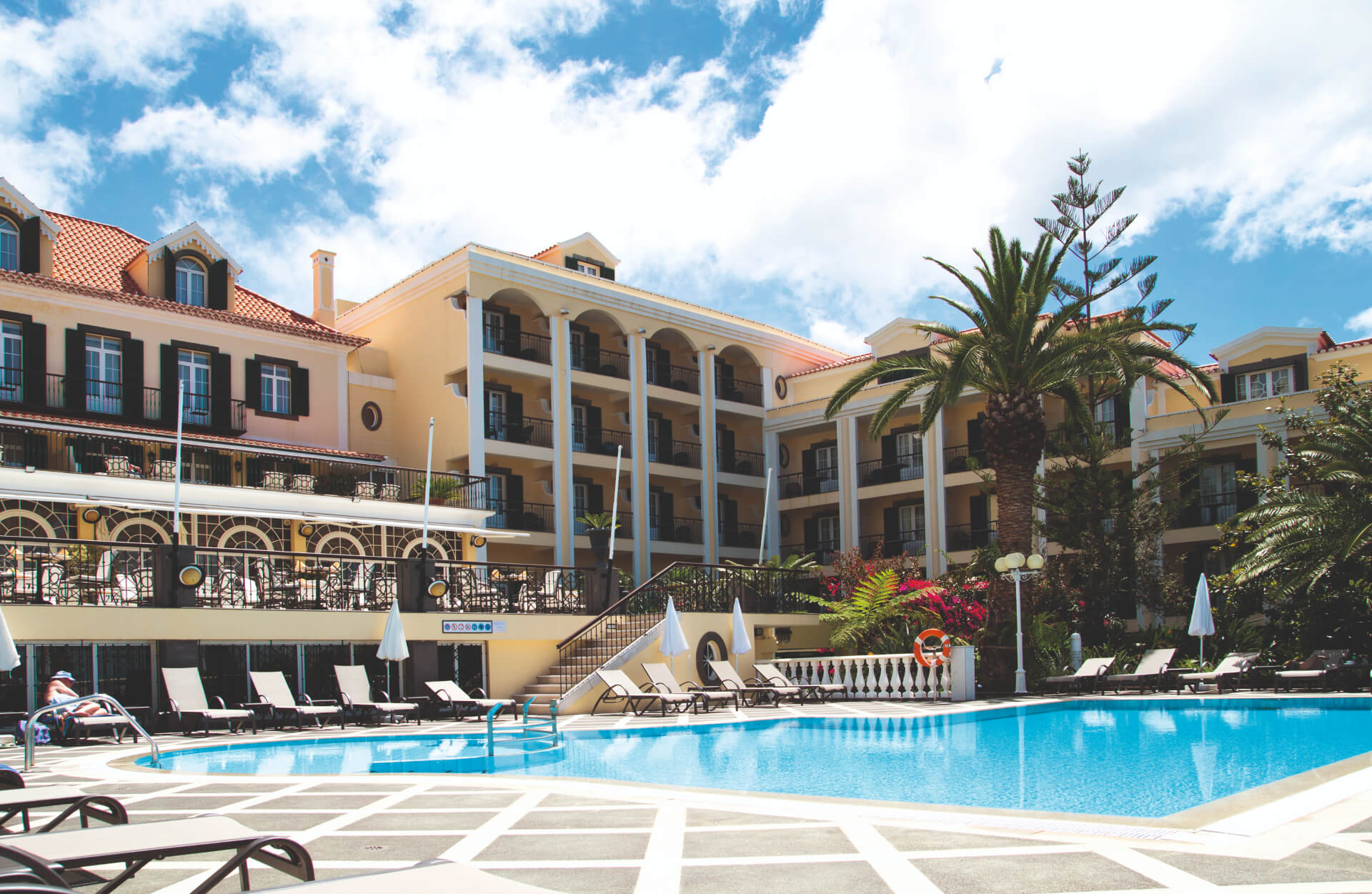 The hotel’s freshwater pool sits high on a terrace and gives you great views out over the bay and Funchal. The hotel’s also surrounded by its own banana plantation and orchard.