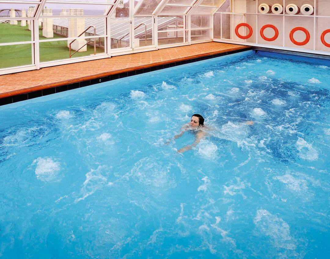 After dinner, there’s a glass-topped atrium with a ballroom-style dancefloor. You can strut your stuff here when live musicians take to the stage.