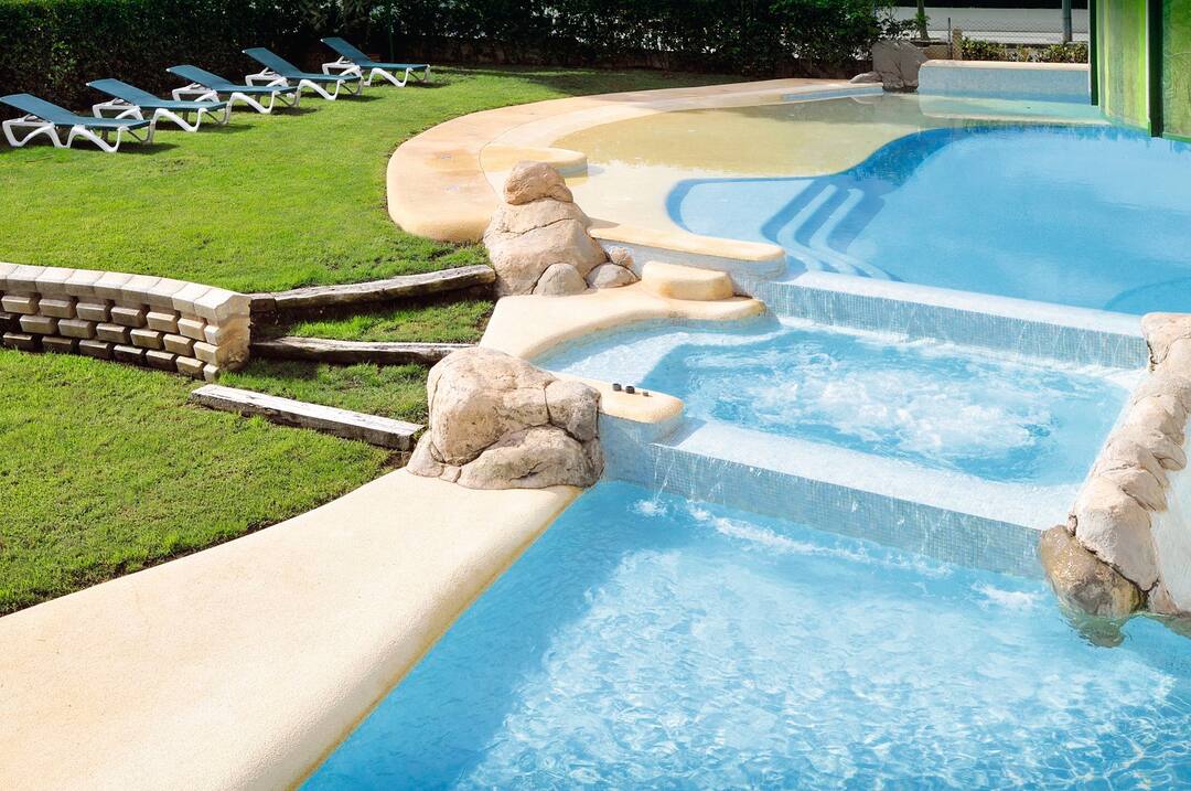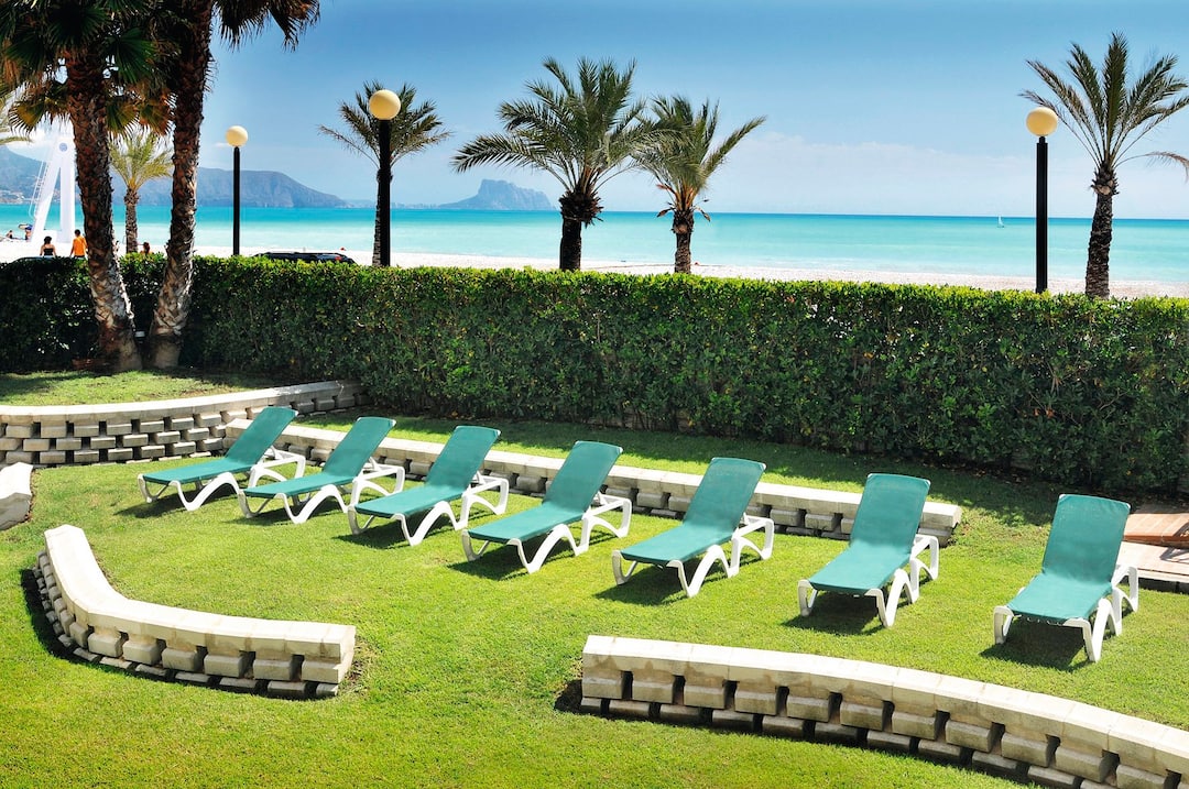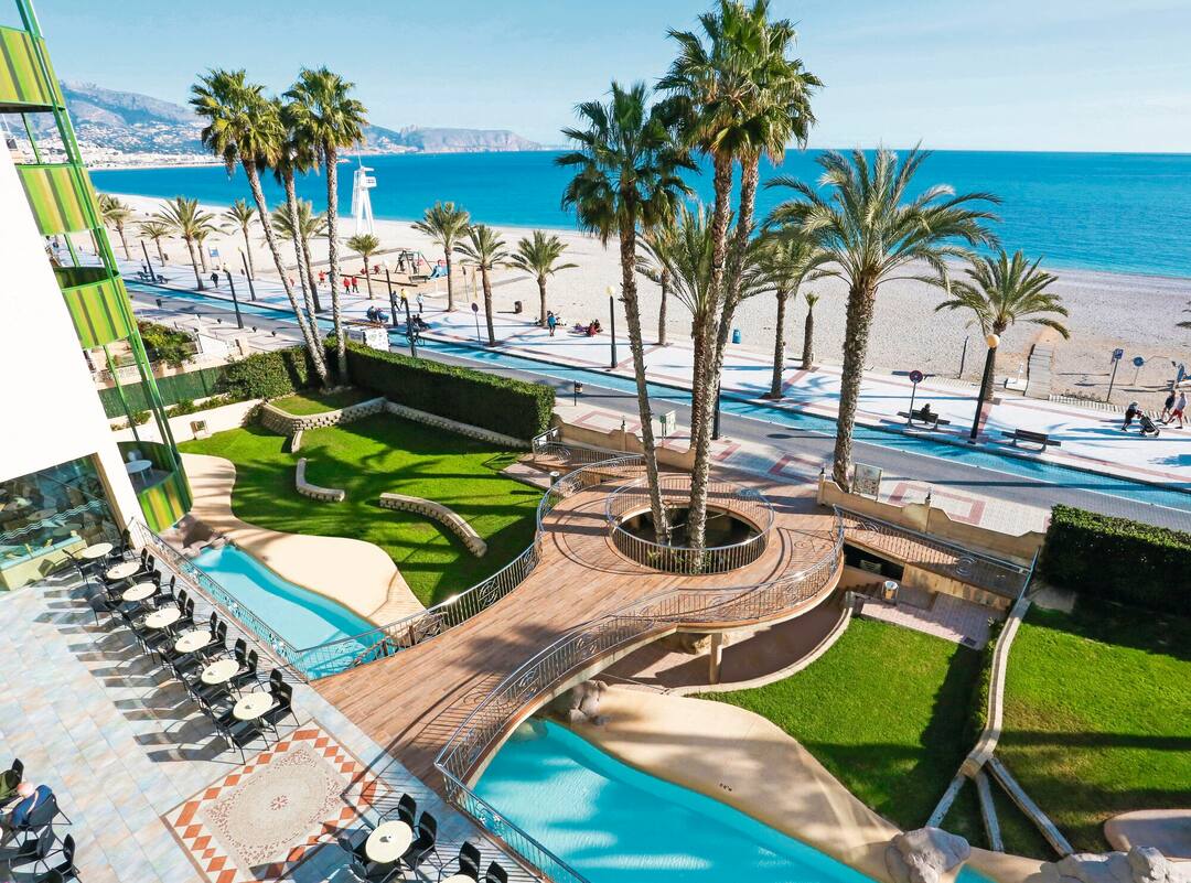 At the Kaktus Albir Hotel, two pools battle it out for bragging rights. One is tiered and includes waterfalls. The other’s up on the roof next to a huge sun deck with loungers that face the sun terrace.