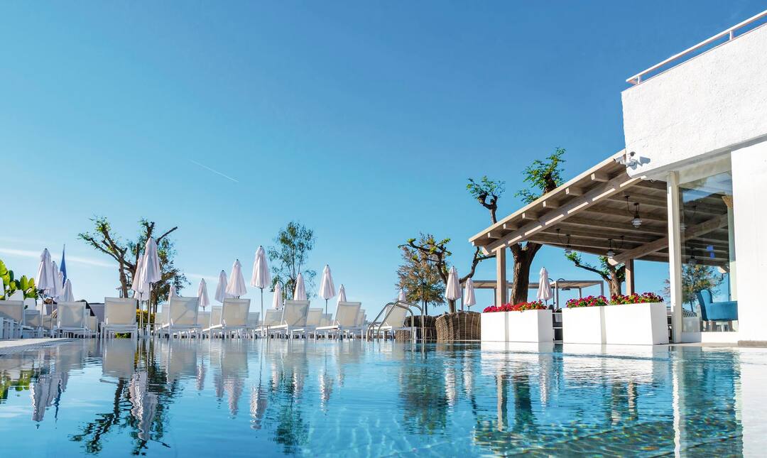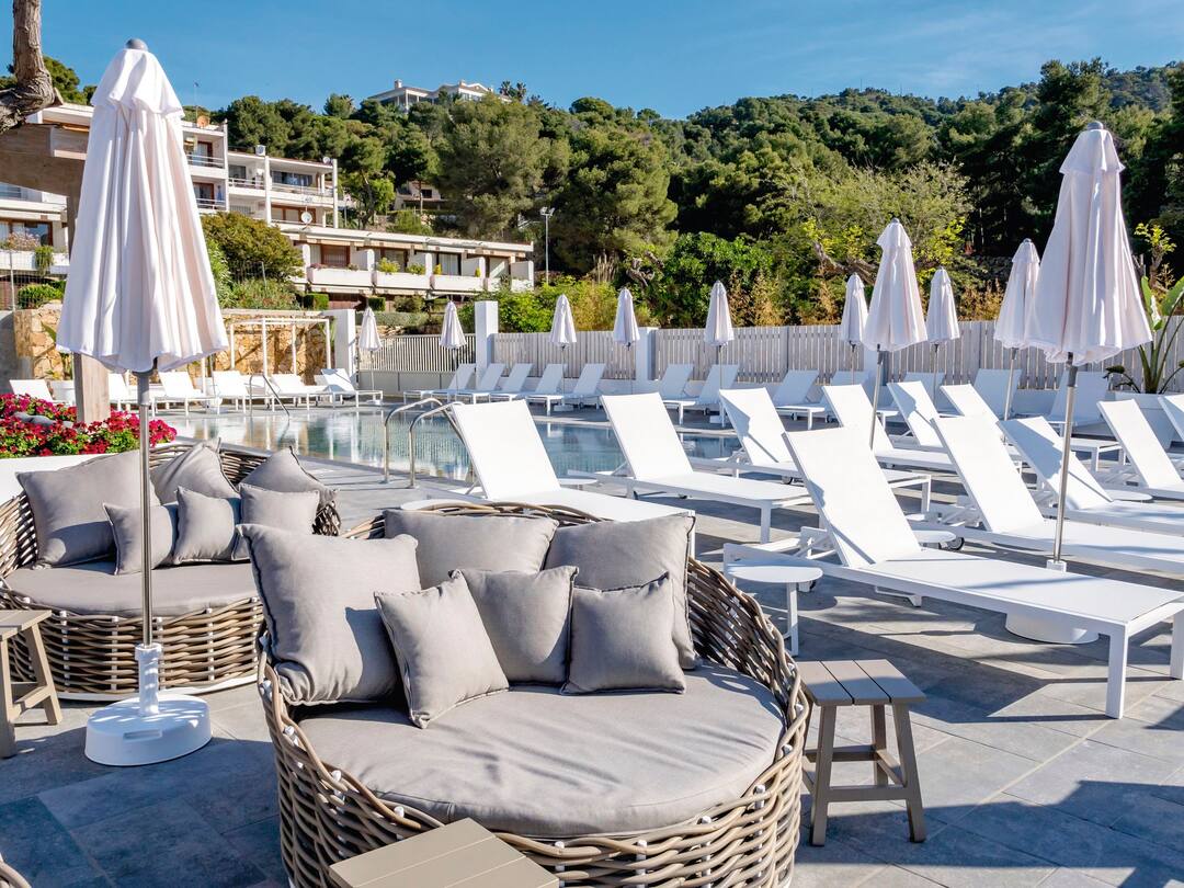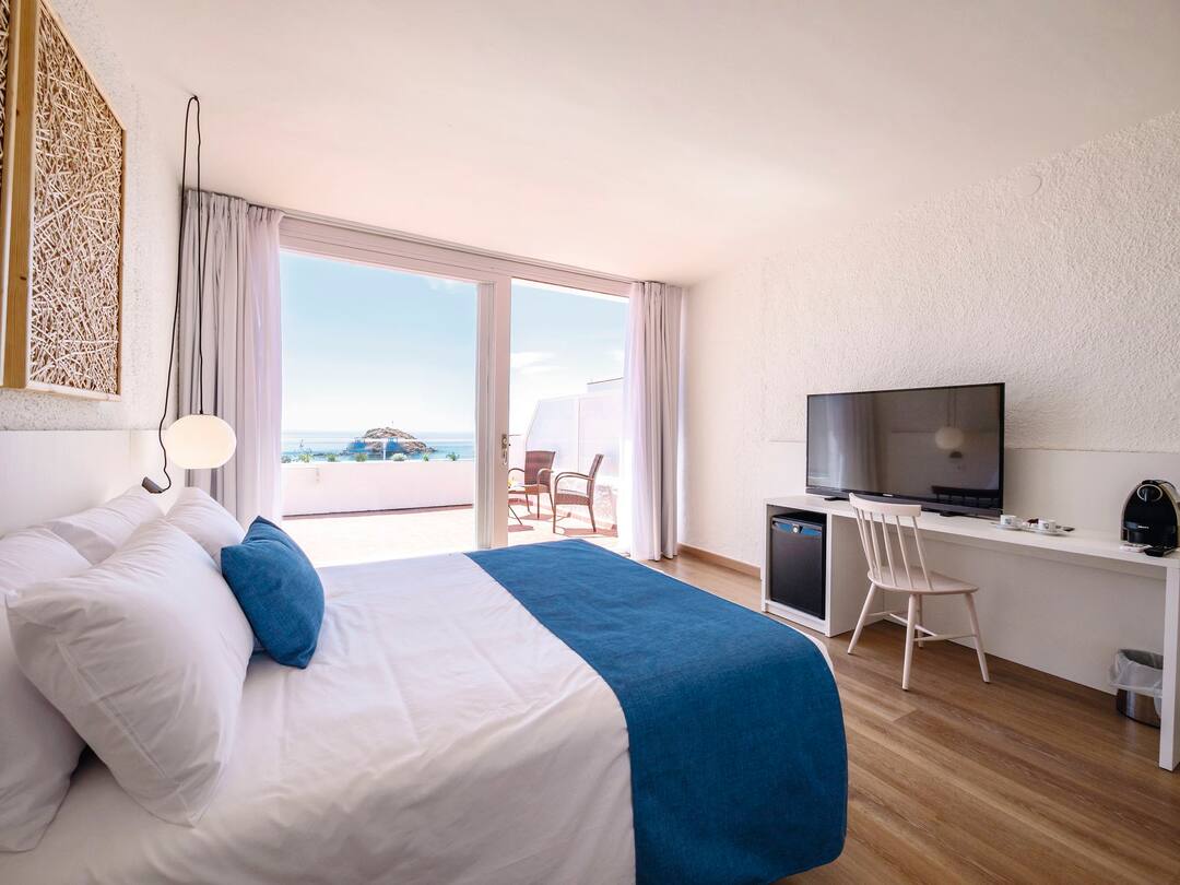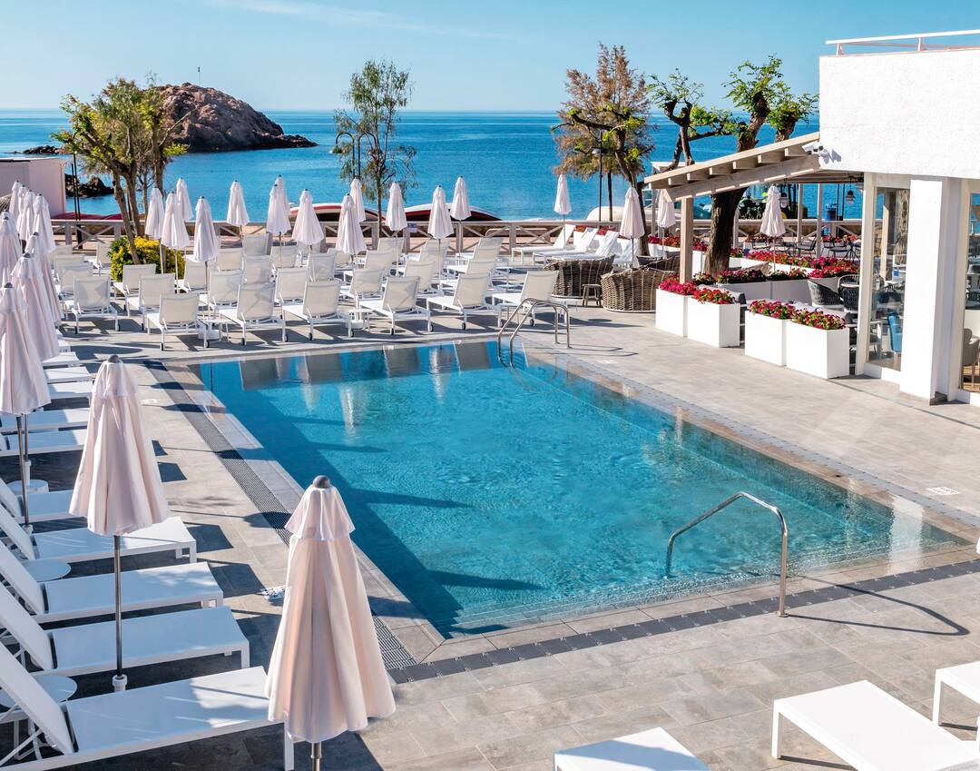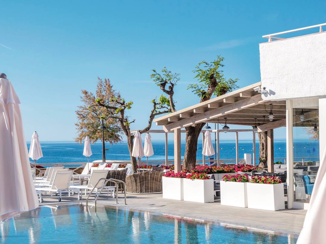 The pool faces the Mediterranean Sea, so you can enjoy the postcard-worthy views while you take a dip. When you get hungry, the restaurant deals in Spanish cuisine with a few international options. You can eat on a pretty terrace overlooking the sea.