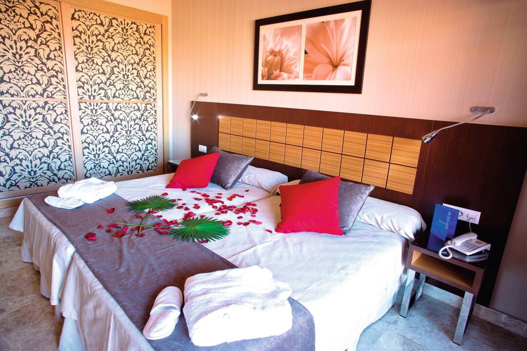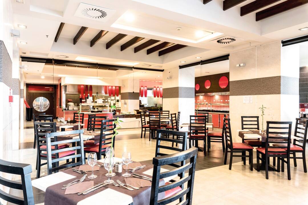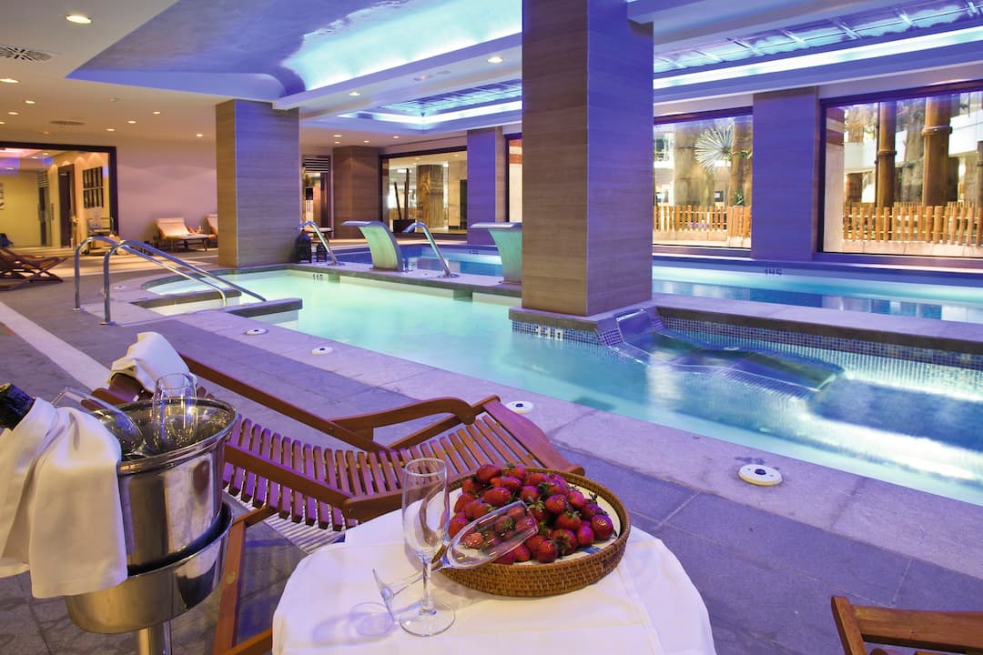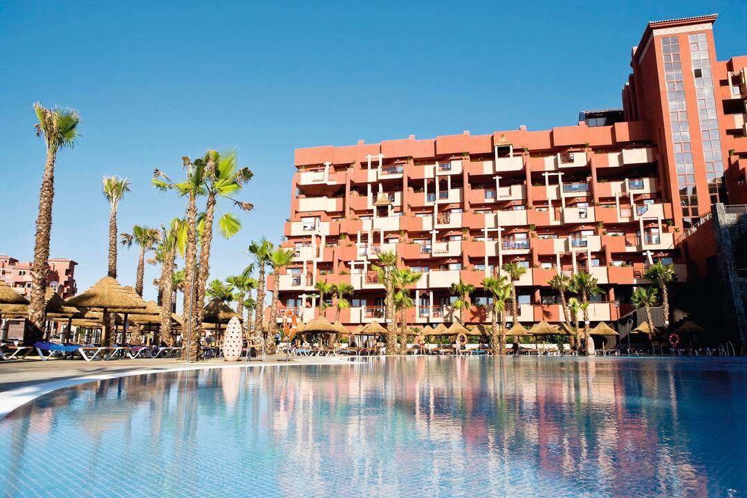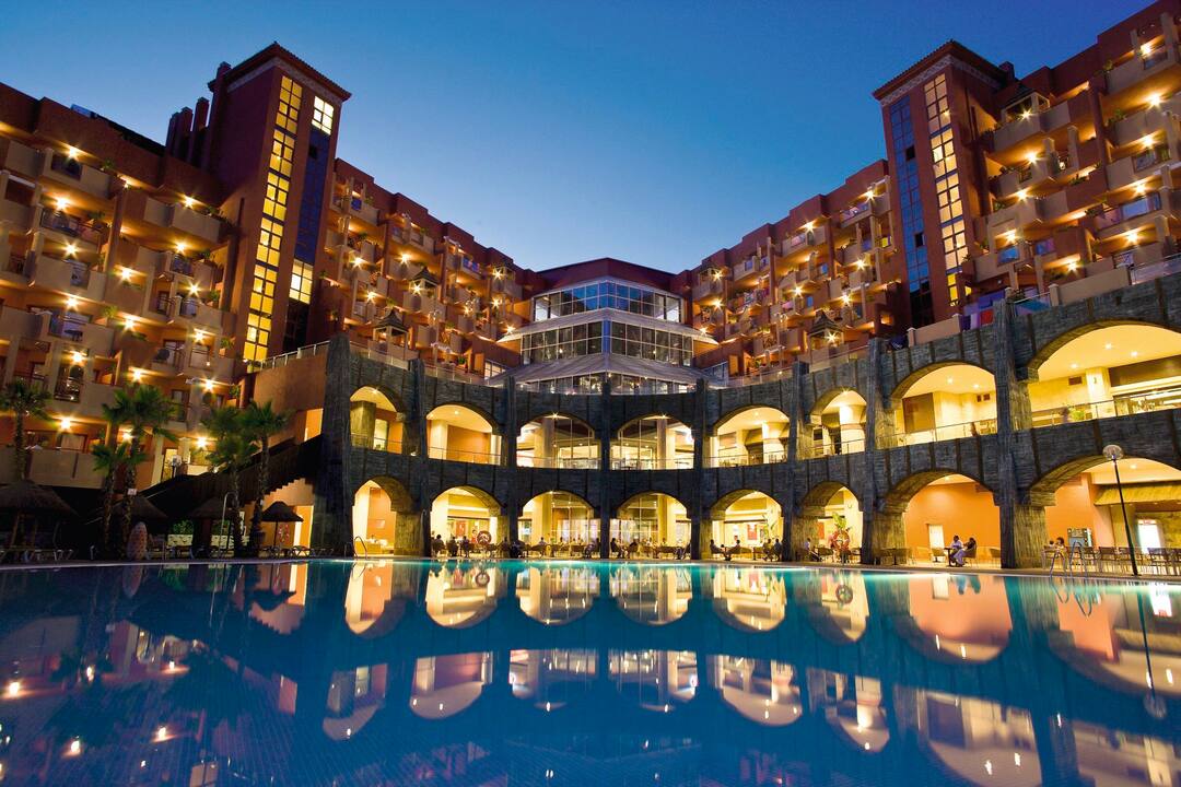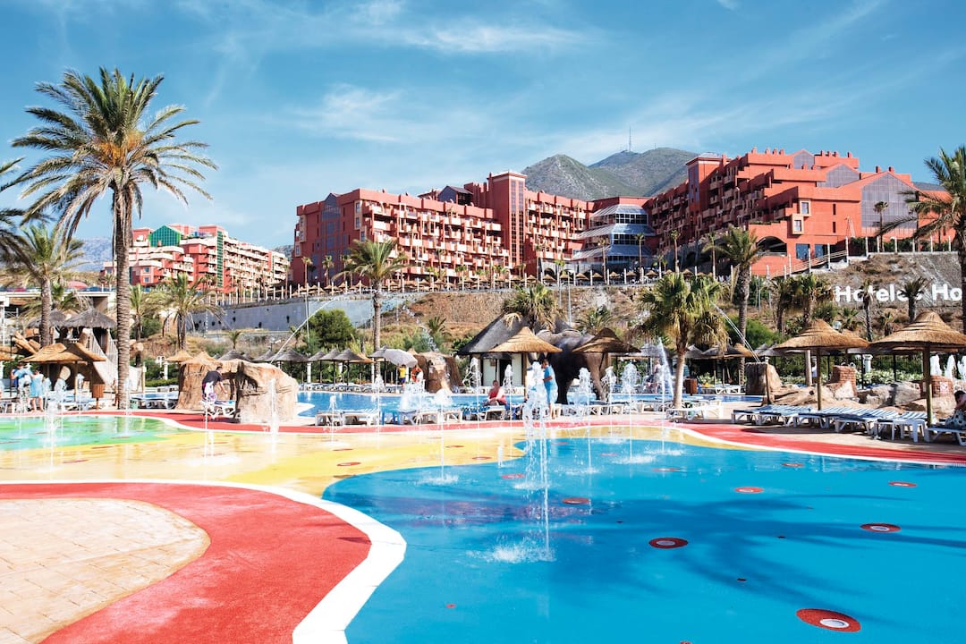 Hotel Polynesia has been designed with a tropical island in mind. You’ll find a waterfall and a rope bridge in the lobby and a large bird aviary. The hotel wows with its huge lagoon pool fringed with palm trees and loungers. In summer, the hotel opens its own Beach Club Waterpark, complete with waterslides and rapids. There’s a huge range of activities on offer, from mini-golf to water polo, and kids clubs run throughout the summer. This is definitely a hotel the whole family will enjoy. The hotel is on a hill, a five-minute walk from Carvajal Beach.