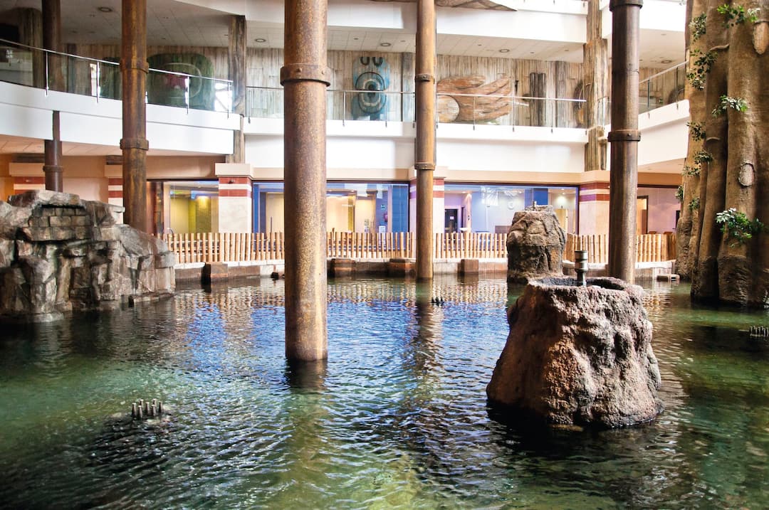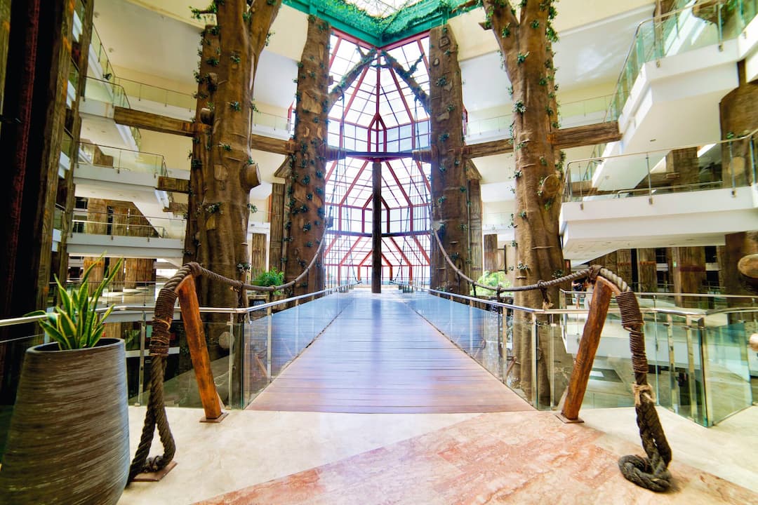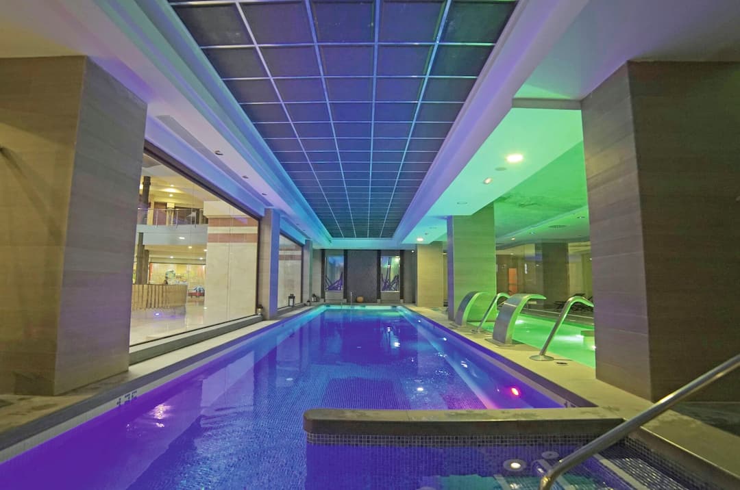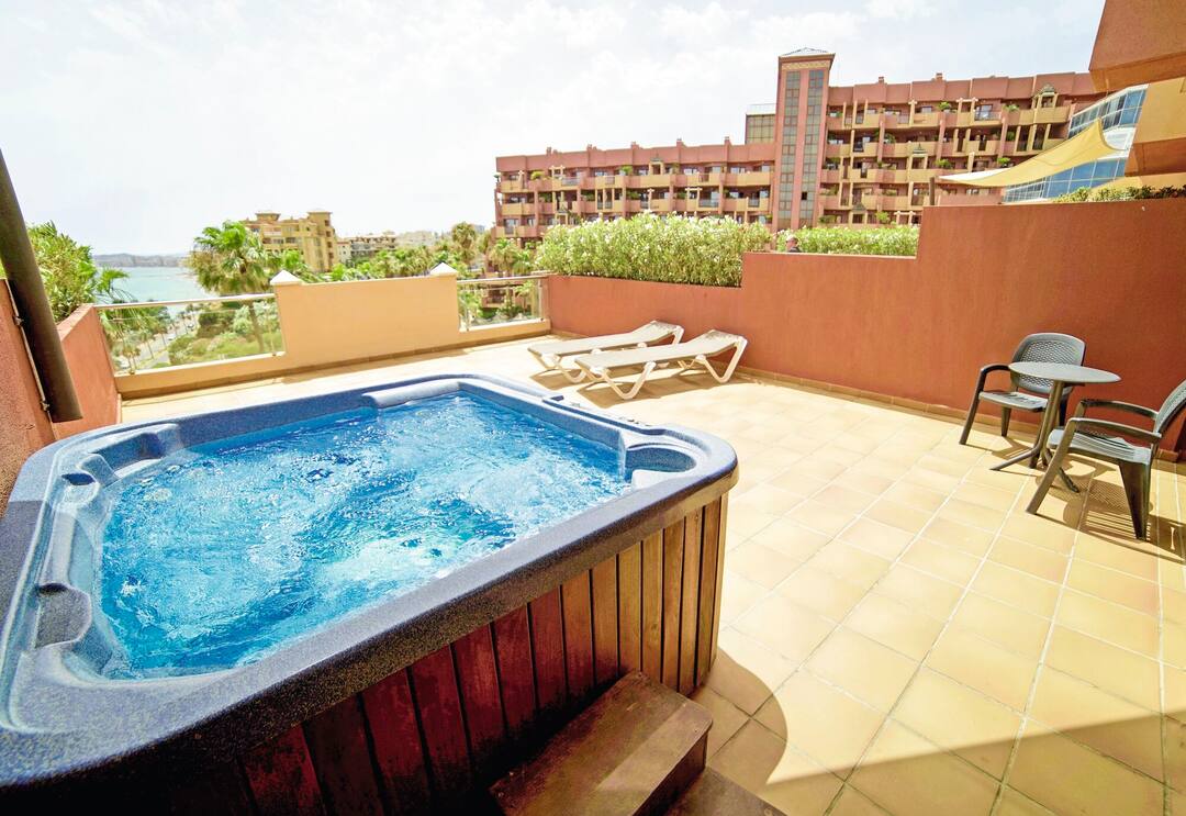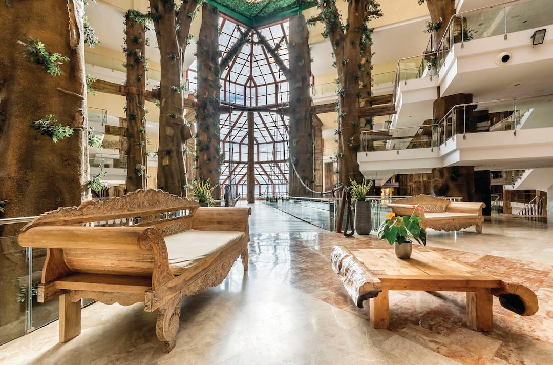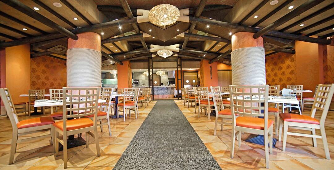 Hotel Polynesia has been designed with a tropical island in mind. You’ll find a waterfall and a rope bridge in the lobby and a large bird aviary. The hotel wows with its huge lagoon pool fringed with palm trees and loungers. In summer, the hotel opens its own Beach Club Waterpark, complete with waterslides and rapids. There’s a huge range of activities on offer, from mini-golf to water polo, and kids clubs run throughout the summer. This is definitely a hotel the whole family will enjoy. The hotel is on a hill, a five-minute walk from Carvajal Beach.