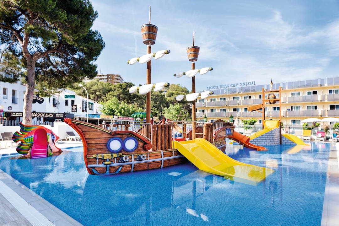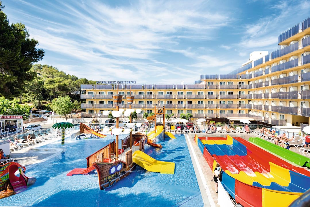 The Best Cap Salou Hotel is a good place to base yourself to explore both Salou and the Costa Dorada. There’s a small but sandy beach right outside the hotel, while PortAventura and the Aquopolis Waterpark are a short drive away. Tucked into a small cove, the hotel is peaceful with comfortable rooms, bright décor and great facilities. The hotel has sea views almost everywhere, from its pool, its gardens and its restaurants. There’s a large pool surrounded by a terrace and sun loungers, as well as a smaller pool for children. There’s even a heated indoor pool inside the spa alongside a sauna and a gym. The restaurant serves delicious food, and children love the kids’ club.