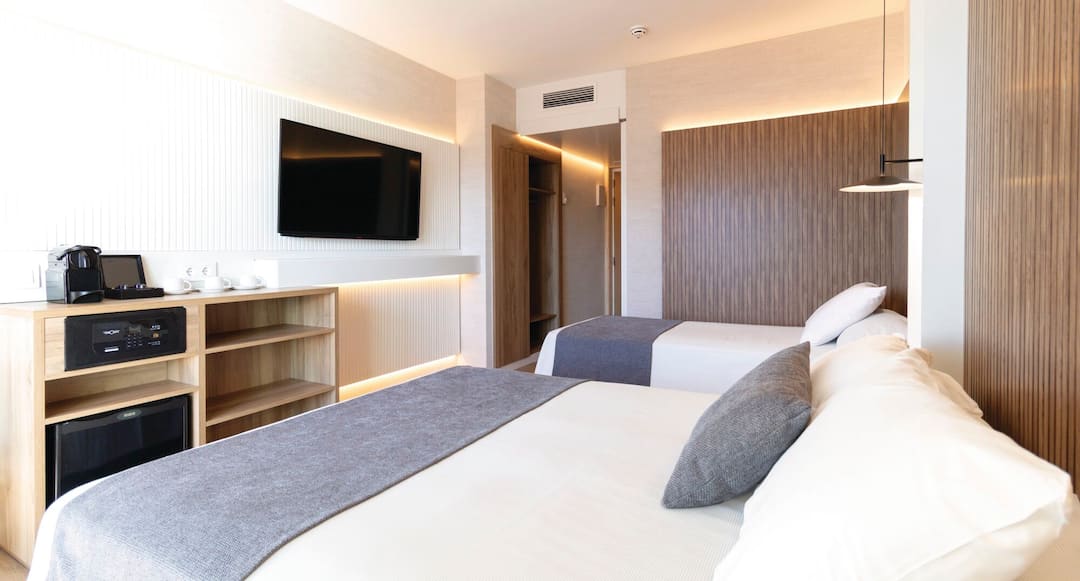 The Golden Port Hotel Salou enjoys an excellent location close to Salou’s bars, shops and restaurants. It’s also only a short walk to Capellans beach. There are three outdoor pools here, and the large lagoon number takes centre stage. At one end there’s a bar, while at the other, a waterfall flows down to the indoor pool. The hotel also boasts a spa which offers an indoor pool, whirlpool bath and sauna. Evening entertainment includes cabaret, magic shows and a children’s disco, and when it comes to dining options, you’ll be spoilt for choice.
