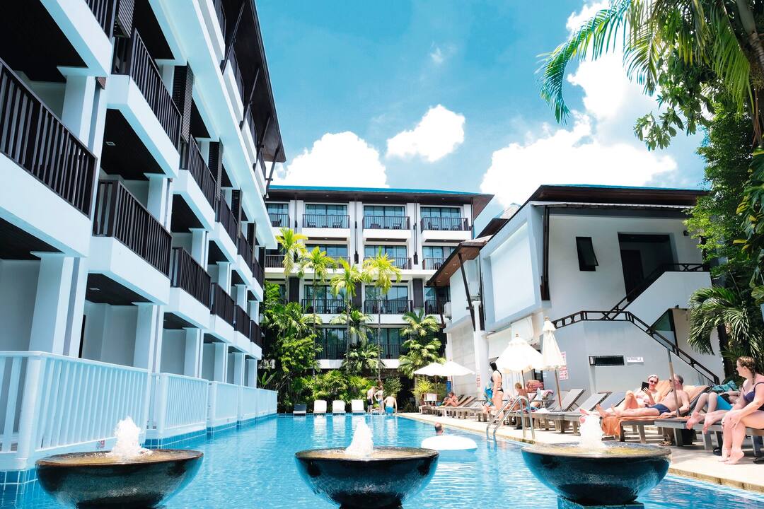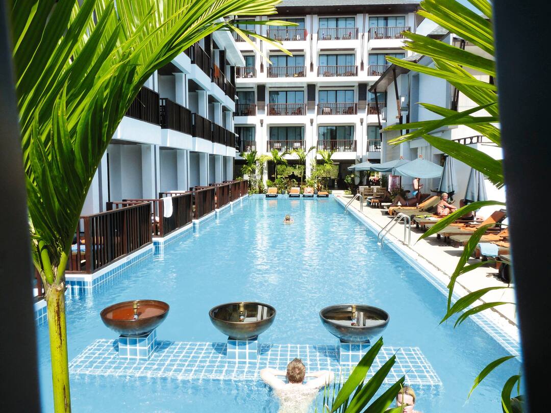 The pool at the Apasari Hotel Krabi is a long, thin number. On one side, it’s bordered by a lounger-lined sun terrace while, at one end, you’ll find fountains and in-water seats. Just to the side, there’s also a separate shallow pool for little ones.
