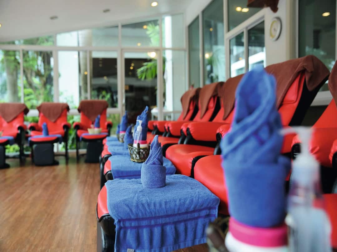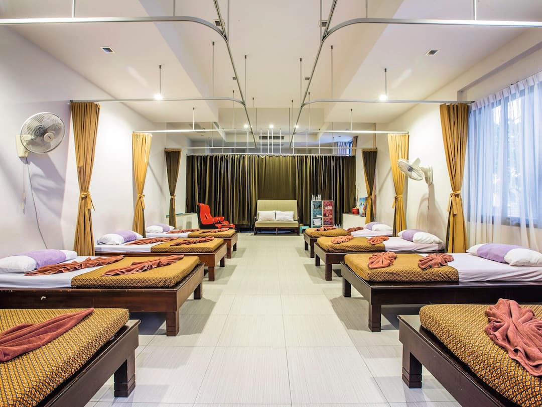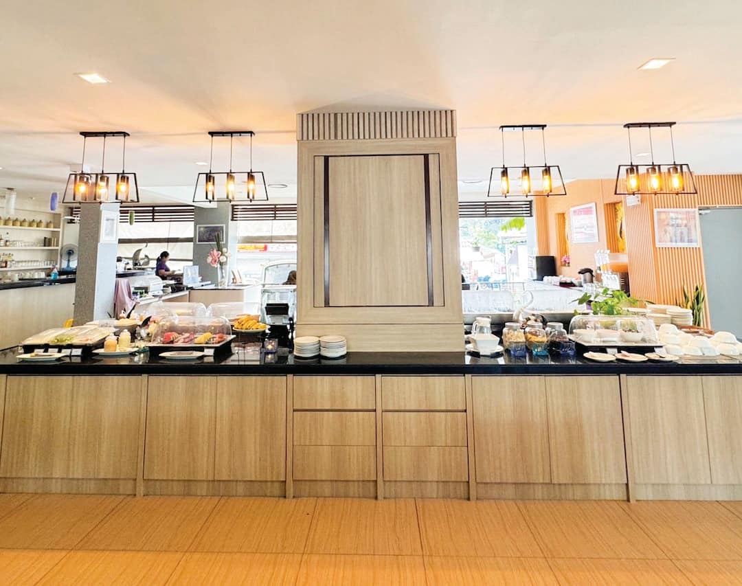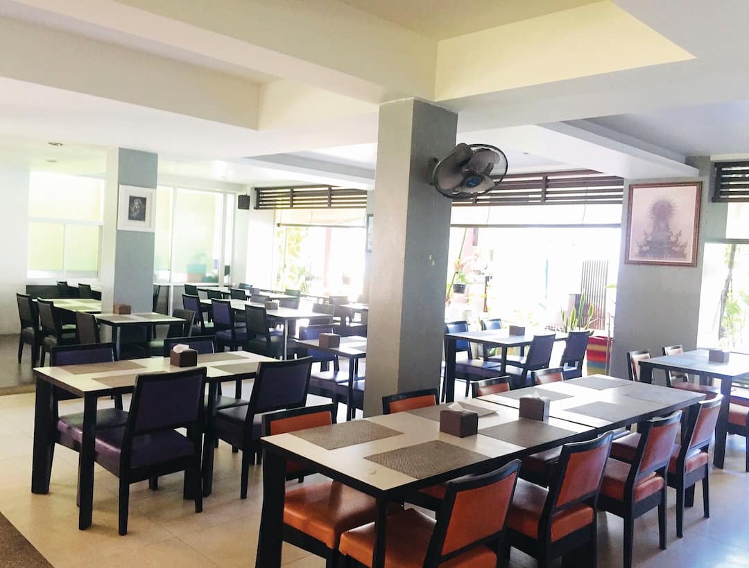 Inside, there’s a buffet restaurant that serves big spreads for breakfast. In the evening, there are menus of traditional Thai and international dishes that keep everyone happy.