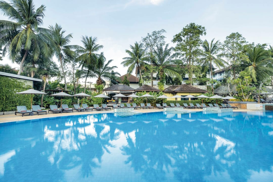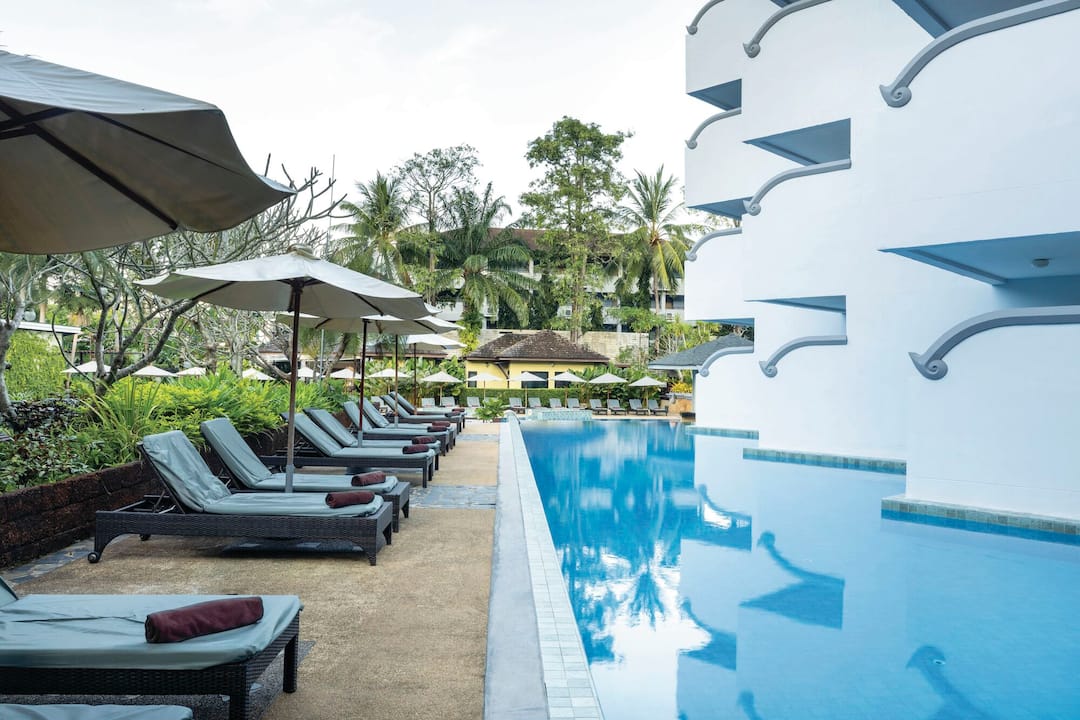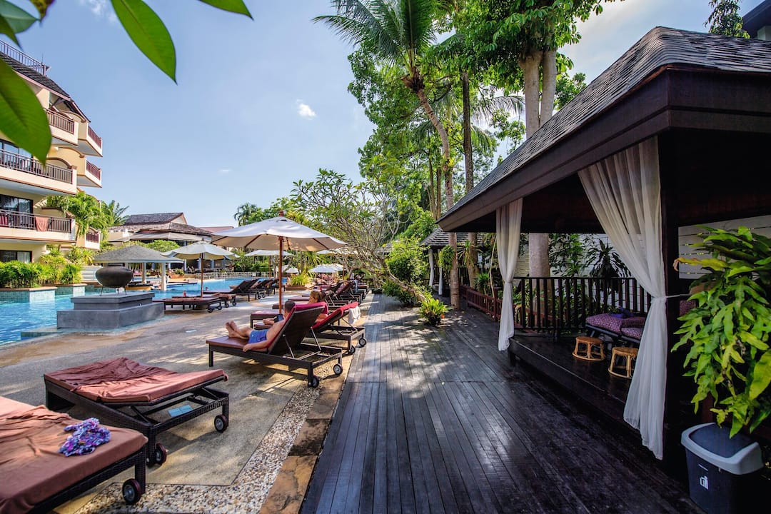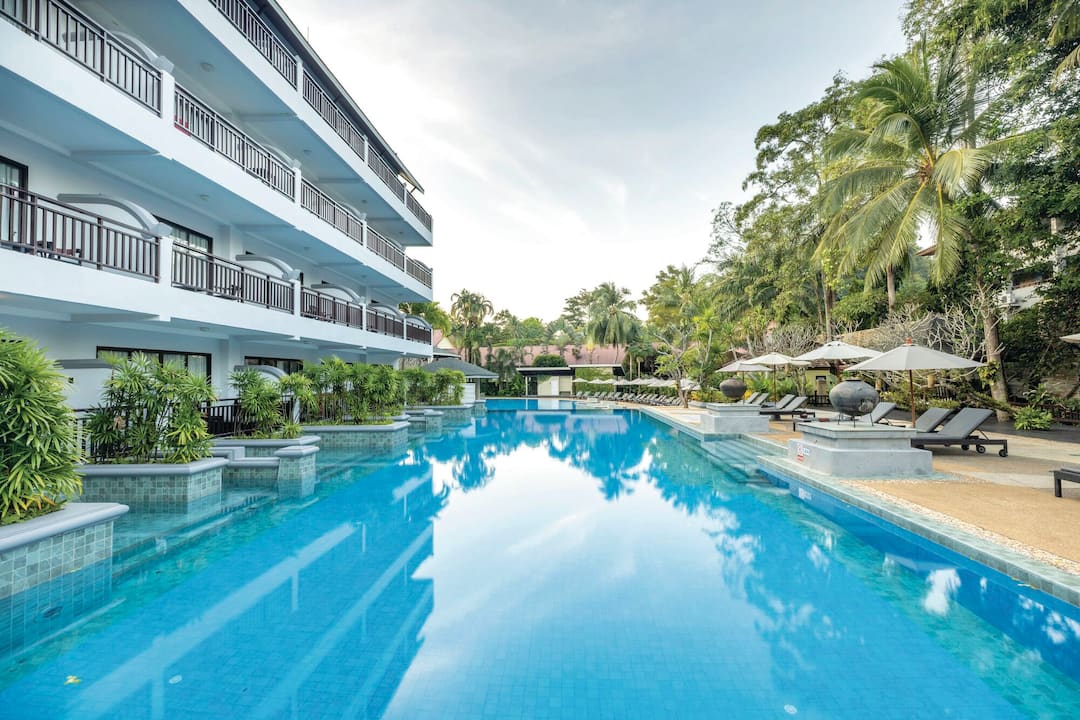 At the Krabi La Playa Resort, two pretty pools sit in the two-acre gardens, and the golden sands of Ao Nang Beach are a short stroll away.