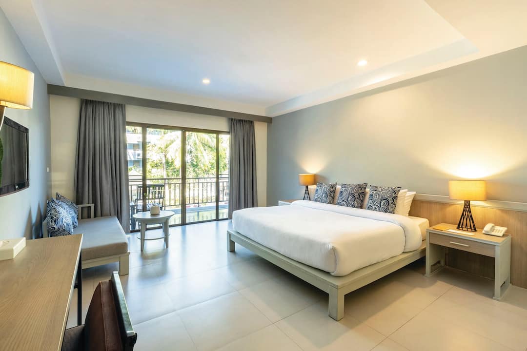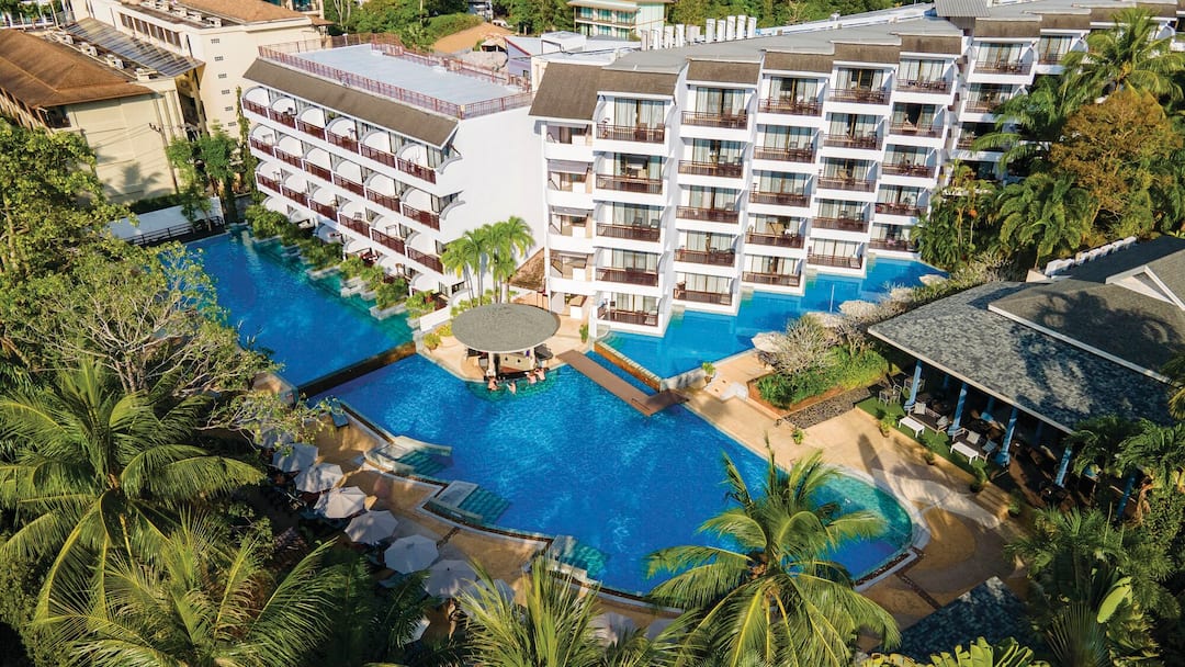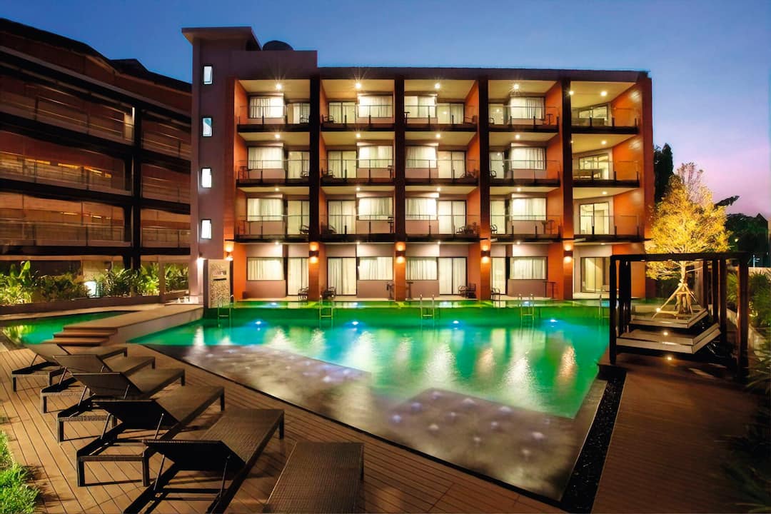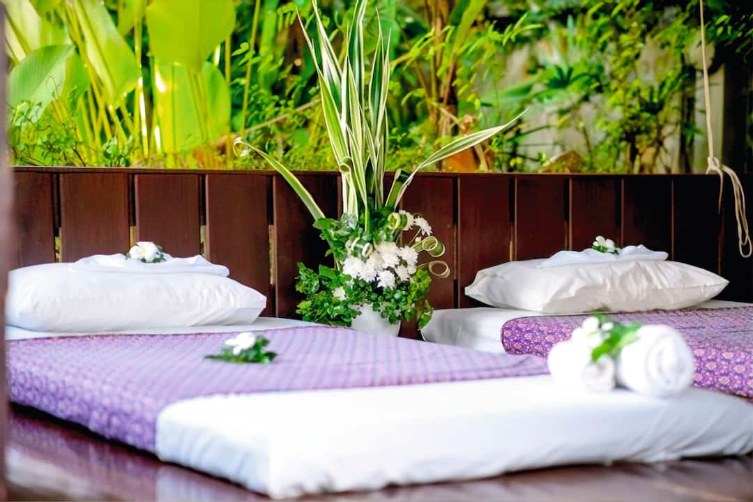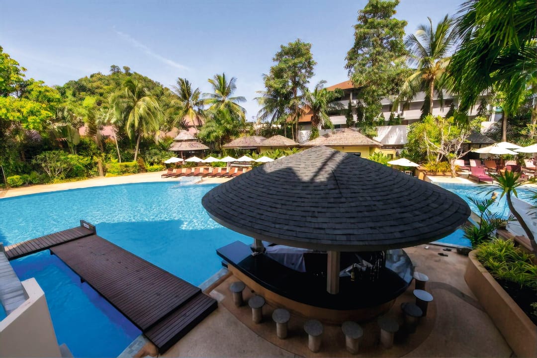 At the Krabi La Playa Resort, two pretty pools sit in the two-acre gardens, and the golden sands of Ao Nang Beach are a short stroll away.