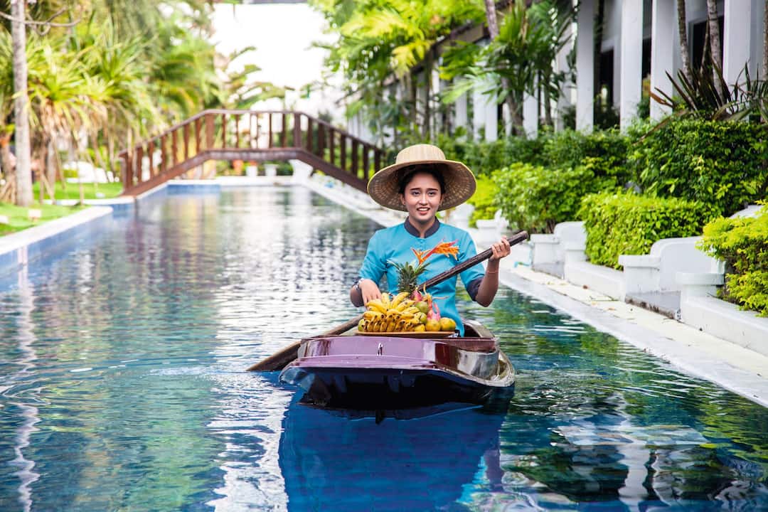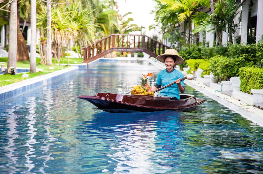 When you stay at The Access Resort and Villas, the first thing you’ll notice is its head-turning pool. It’s winding and river-like, with over 100 swim-up rooms leading directly into it. If you order room service in one of these rooms, it’s even delivered by a traditional Thai tail boat. And if that wasn’t enough, there are several swim-up bars in the pool, too.