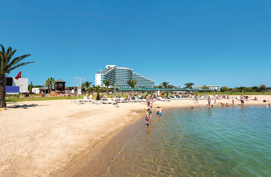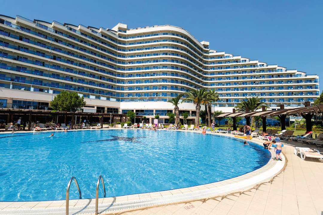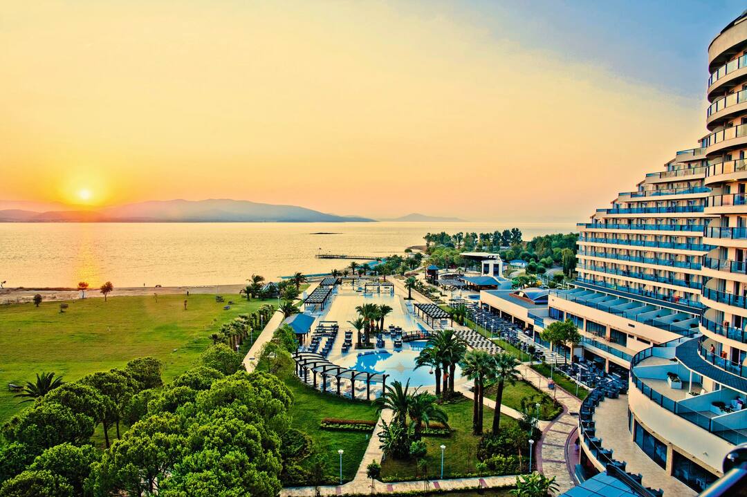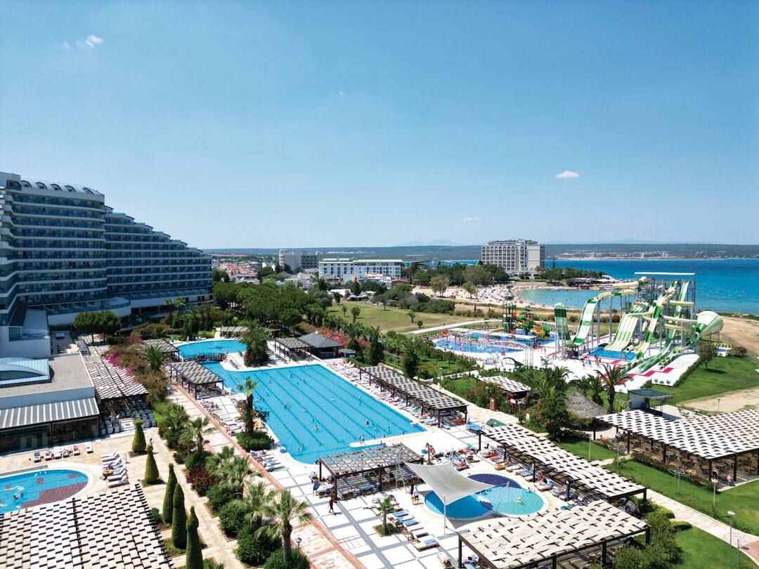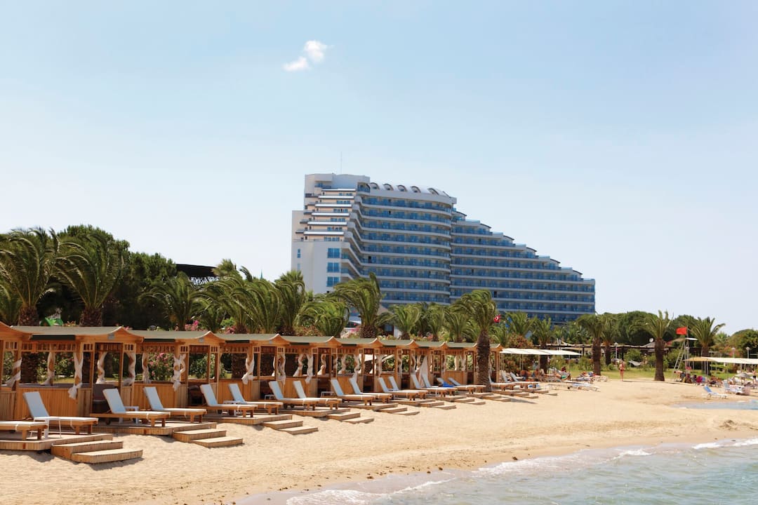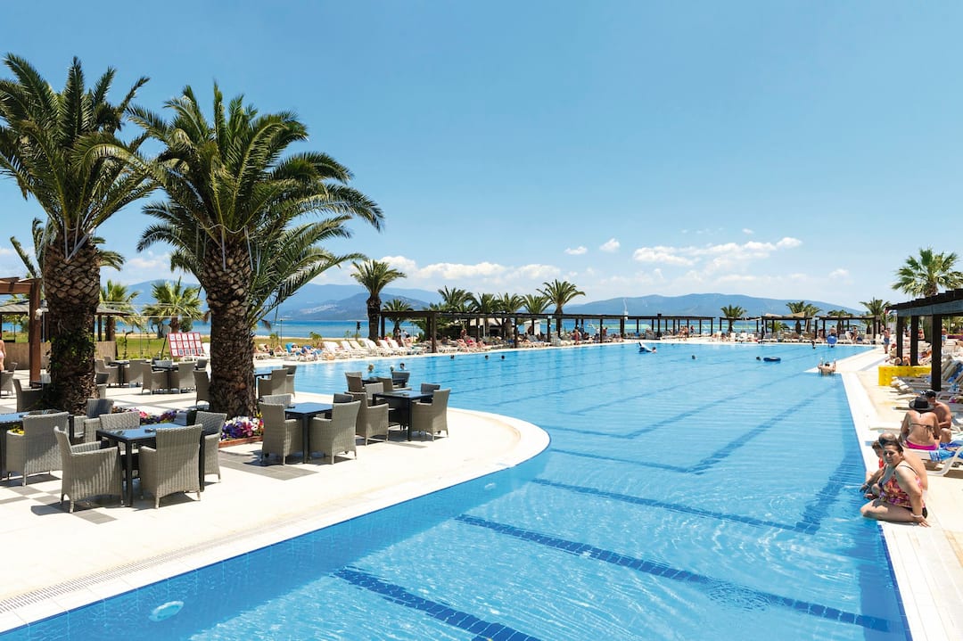 The Venosa Beach Resort and Spa is in a top location just off a charming shingle beach, with the centre of Altinkum being a short bus ride away. The hotel boasts a fantastic pool scene as it’s home to a large sea-view pool, another with slides and another indoor pool, too. There are five restaurants, including seafood and Italian places, and a buffet restaurant. The rooms at Venosa Beach Resort and Spa are tastefully decorated and come with air conditioning, satellite TV, and either a balcony or terrace, offering you some extra outside space with a pretty sea view.