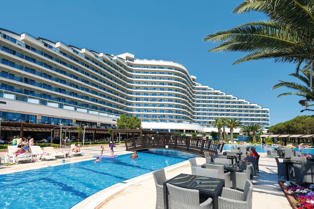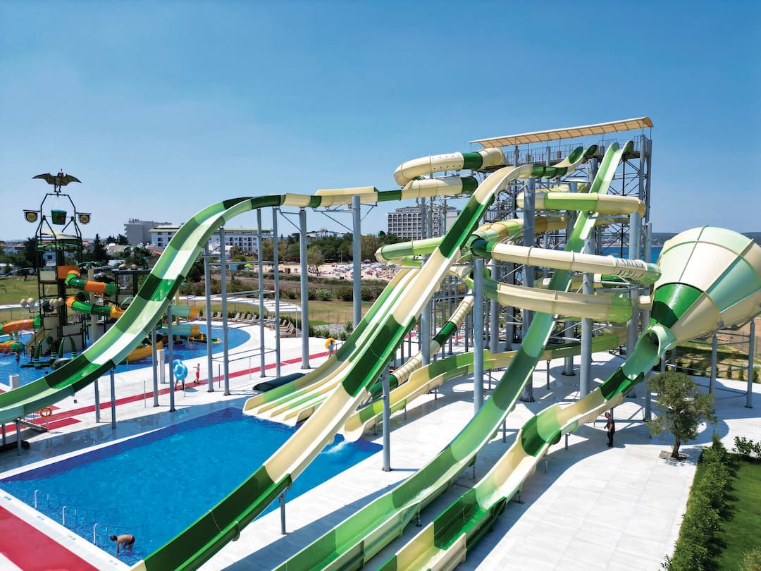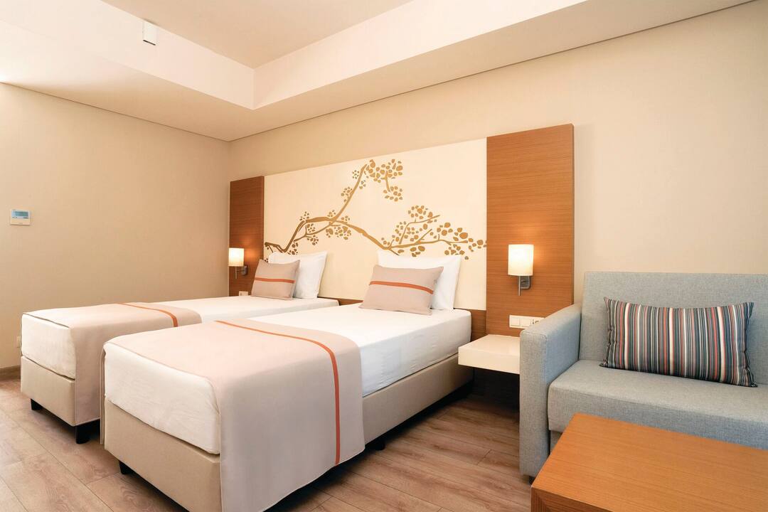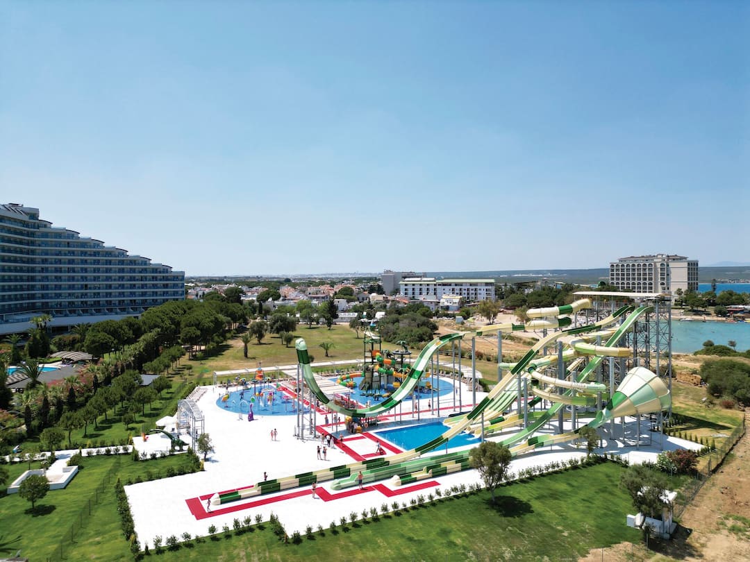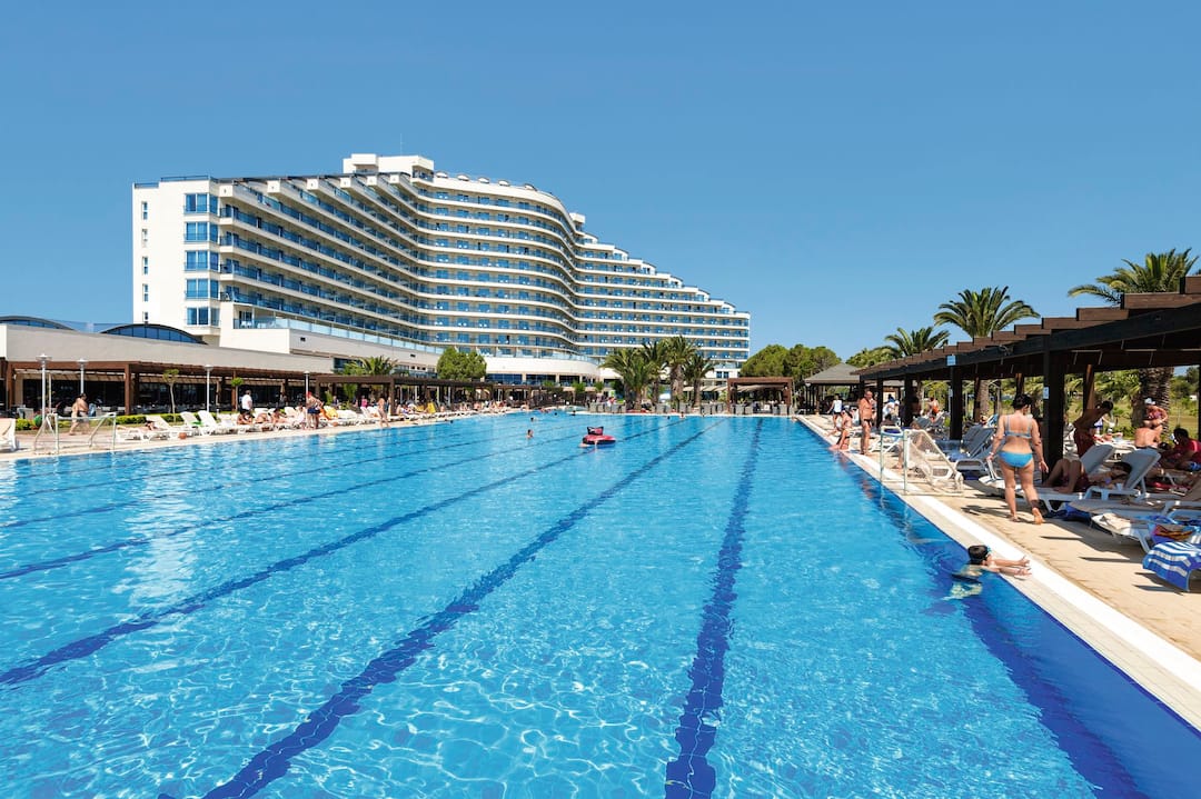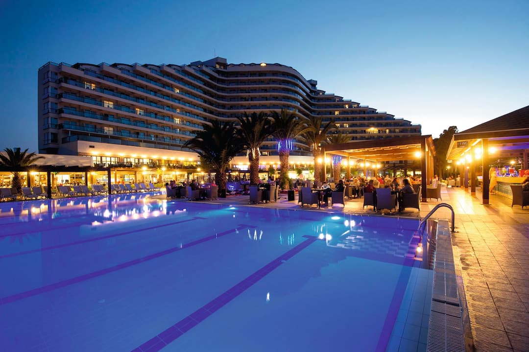 The Venosa Beach Resort and Spa is in a top location just off a charming shingle beach, with the centre of Altinkum being a short bus ride away. The hotel boasts a fantastic pool scene as it’s home to a large sea-view pool, another with slides and another indoor pool, too. There are five restaurants, including seafood and Italian places, and a buffet restaurant. The rooms at Venosa Beach Resort and Spa are tastefully decorated and come with air conditioning, satellite TV, and either a balcony or terrace, offering you some extra outside space with a pretty sea view.