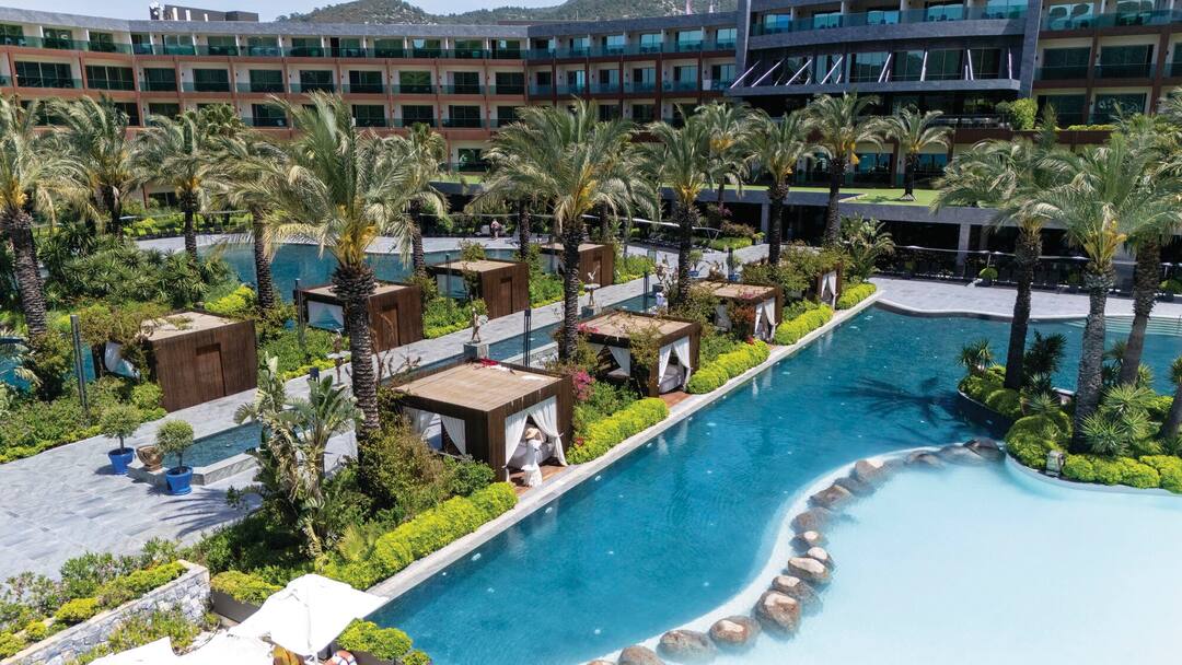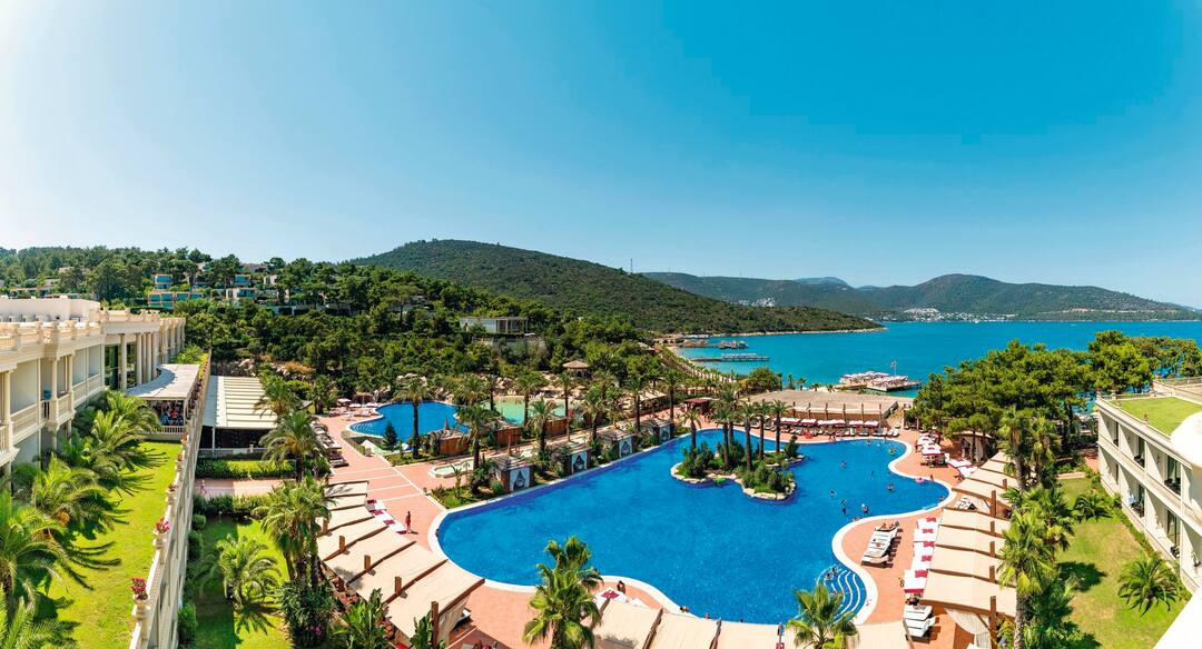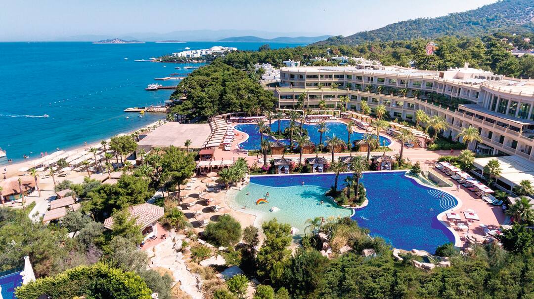 Resting in the picturesque bay of Torba, your stay at Vogue Hotel Bodrum will be one spent among the palatial wonders of the grand hotel, soaking up views of the Mediterranean Sea and enjoying days spent on your private beach just 500m away. Perfect for families and kids of all ages, Vogue Hotel Bodrum mixes beauty with play. It’s home to an on-site water park equipped with 17 slides and six pools, and it has five restaurants serving a variety of international cuisine. Not to mention the multitude of sophisticated bars where you’ll be able to enjoy a drink or two in the serenity of Torba Marina. Soak up the Turkish sun while staying at Vogue, a family-friendly hotel decorated with luxury marble floors, spacious rooms and the type of plush furnishings that ensure you’ll always be holidaying in style.