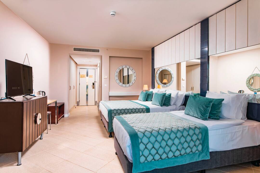 At the Baia Bodrum Hotel, everything’s luxurious. There’s a minimalist theme throughout the hotel, so you get an uber-smart pool area and streamlined rooms that feature ivory-coloured furniture and flat-screen televisions. The outdoor pool’s great for activities, while the indoor number is perfect for relaxing. Little ones are also taken care of with a splash park.