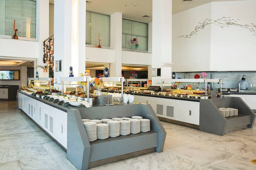 Food is served around the clock, so you can get three square meals a day and 24-hour snacks. For main meals, there’s a super-sized buffet and two a la carte restaurants. After your evening meal, the amphitheatre stages occasional live music shows.