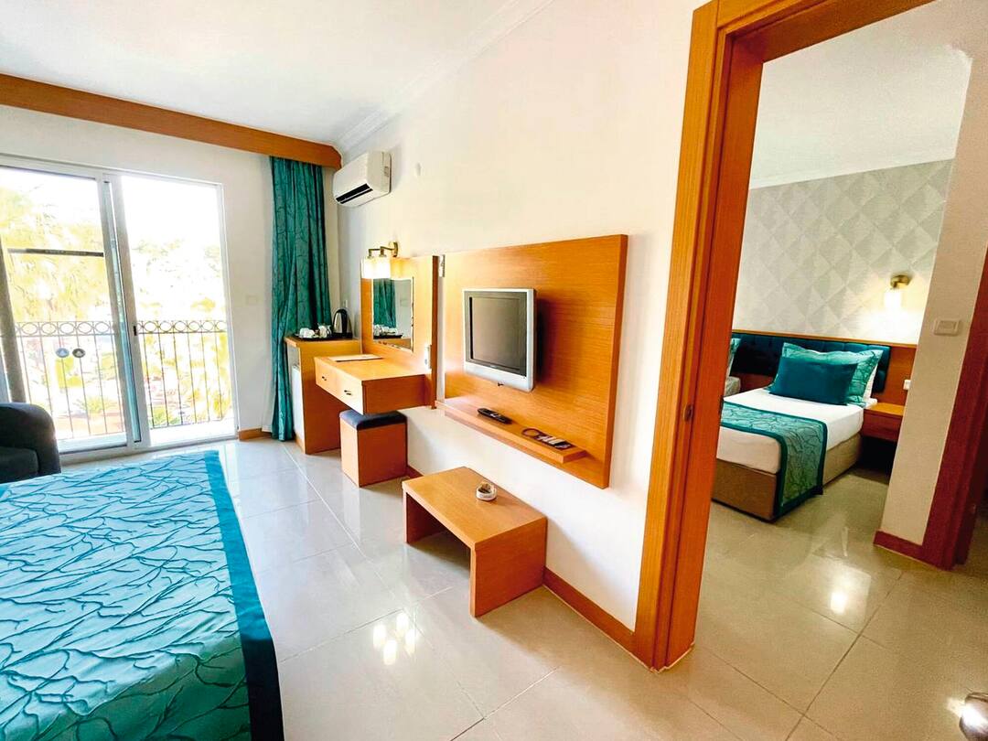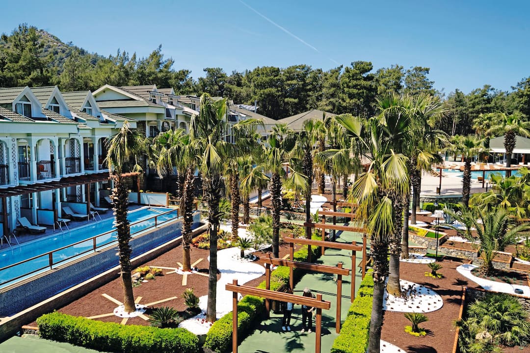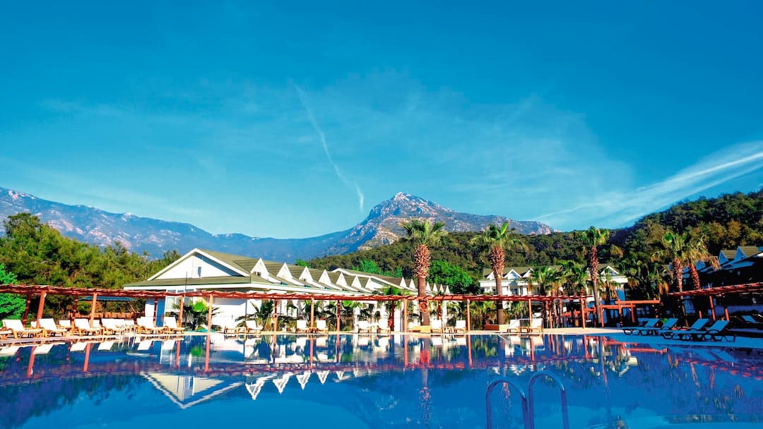 You can also indulge yourself with a free sauna or Turkish bath experience at the spa. There’s a large buffet restaurant specialising in Turkish dishes, and an international a la carte restaurant with an outdoor terrace. A shuttle to the beach at Olu Deniz is provided free of charge.