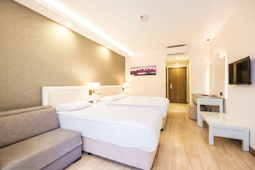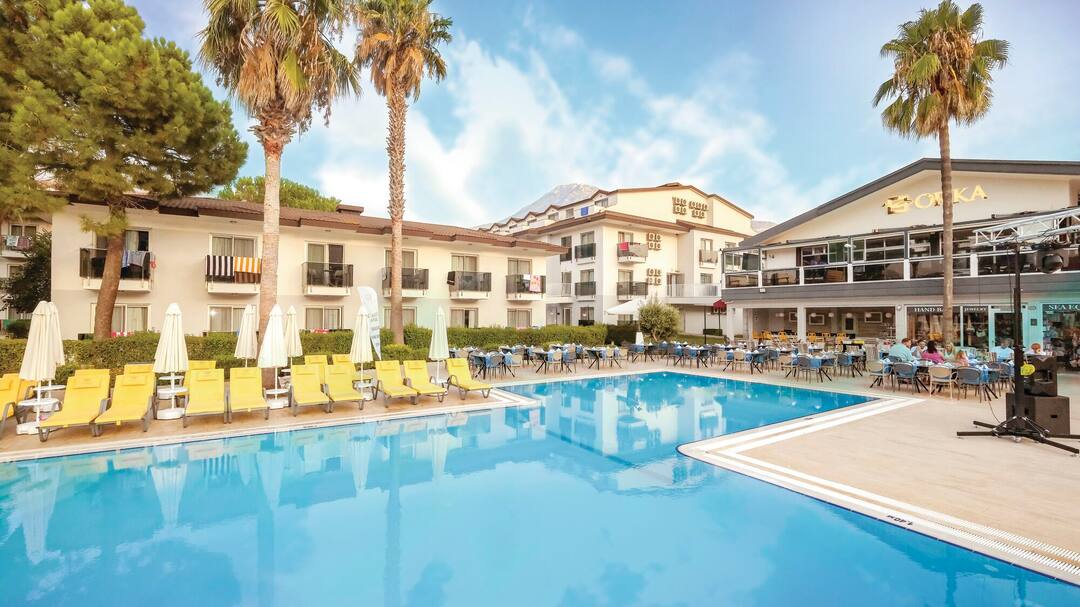 Located a short walk away from the resort’s centre, where you’ll find a great range of bars and restaurants, the Sundia Hisaronu by Liberty is geared up to cater for the whole family. As well as two swimming pools, you’ll also find water slides and an entertainment team. On top of this, there are also two separate kids’ clubs – Lollo & Bernie Kids’ club for three to 11-year-olds, and the Teen Lounge for those aged 12 to 17. The hotel also contains three dining options that will keep the whole family happy. These include the buffet restaurant, an a la carte and a barbecue. There’s also a garden café, a bar and a pool bar for refreshments.
