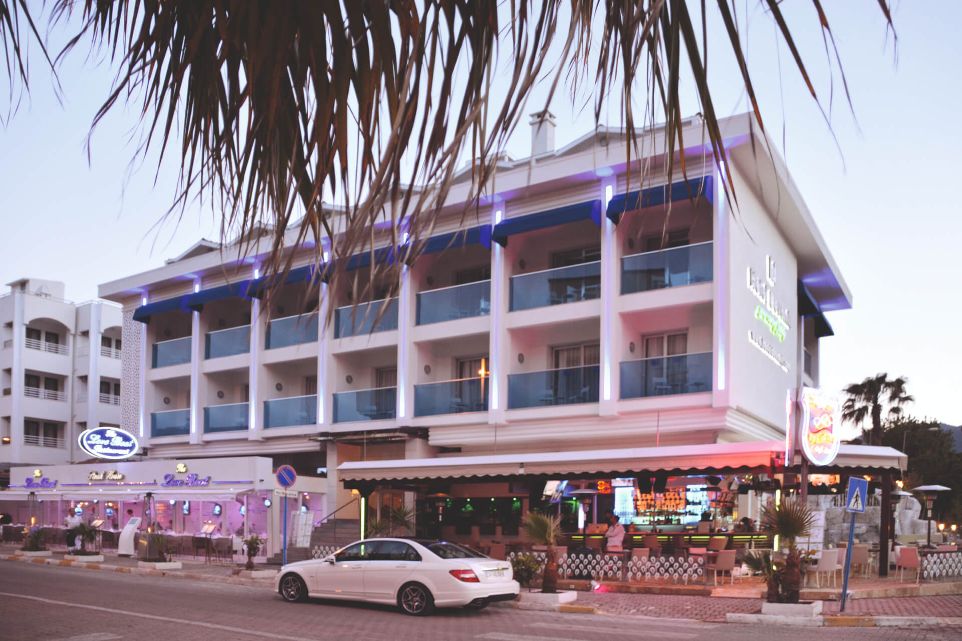 The boat-themed restaurant is a highlight. Waiters wear sailor costumes and there’s a large choice of international dishes. The sports bar is also incredibly popular. It has a TV showing all the latest matches and a DJ often plays here until 1am. A lunch menu is served throughout the day and there’s a lengthy drinks list.