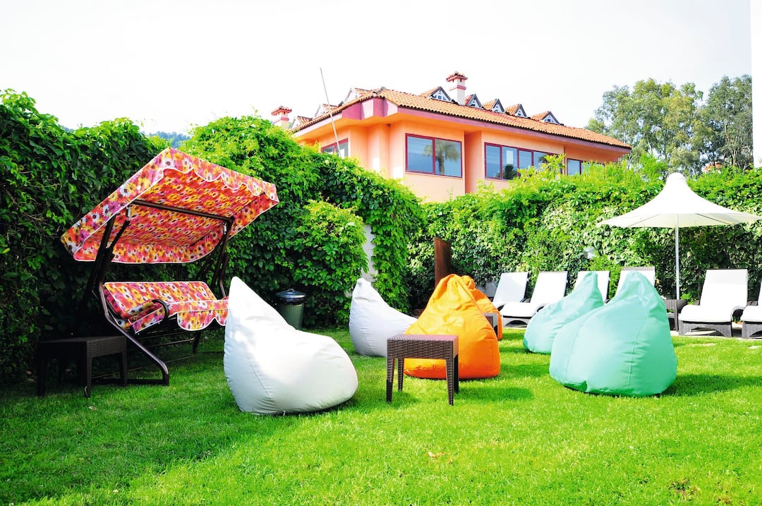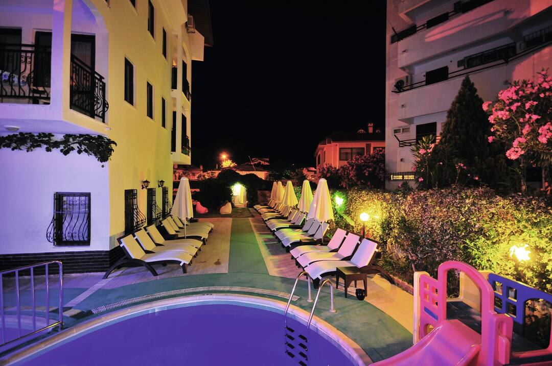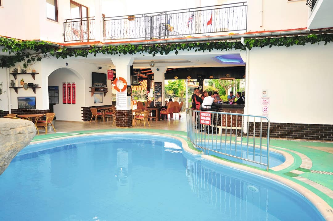 There’s a little pool tucked between some of the apartment blocks. It’s hidden away from the street by colourful flowering bushes and it’s decorated with rock ornaments, a line of sunloungers and a rustic-looking bar. Once a week, the hotel hosts a Turkish party night, too!