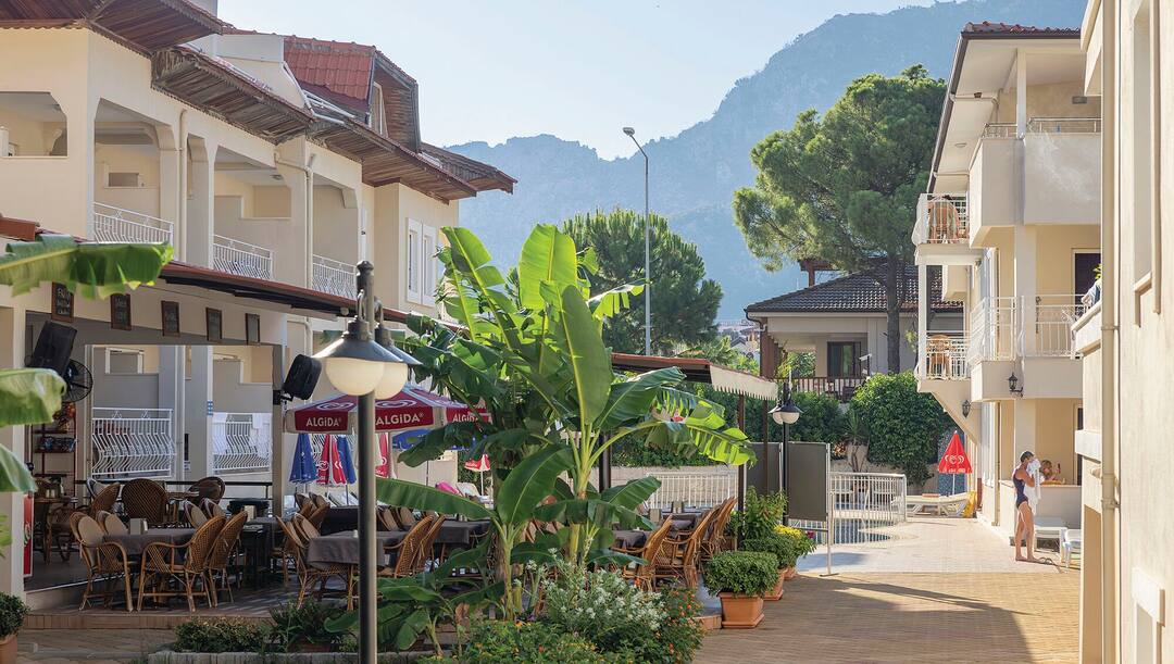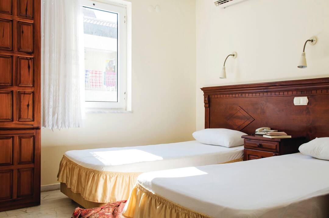 The family-run Maricya Apartments will soon feel like a second home. You’ll be in simply decorated apartments, complete with kitchenettes and private balconies. Of course, if you don’t feel like cooking, you can grab a meal at the onsite bar and restaurant, which has outdoor seating. There’s a decent-sized pool surrounded by loungers and a splash zone for the kids. The bar stays open until late, and after that, you can head to the tavernas in Içmeler, just a 10-minute walk away.