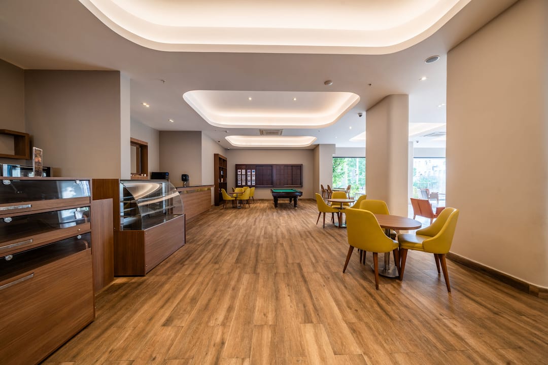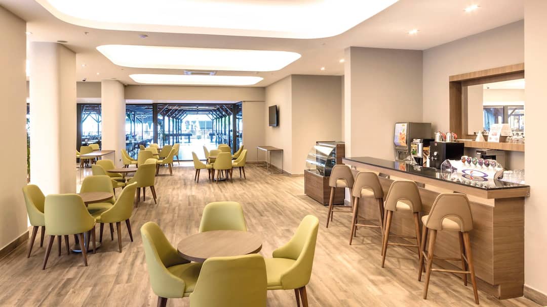 The hotel is located one and a half kilometres from the beach, and the same distance from the resort centre, so everything you could possibly need is within a 15-minute walk. Food is provided at the international buffet restaurant, but there’s also an a la carte restaurant that’s payable locally, should you fancy a change.