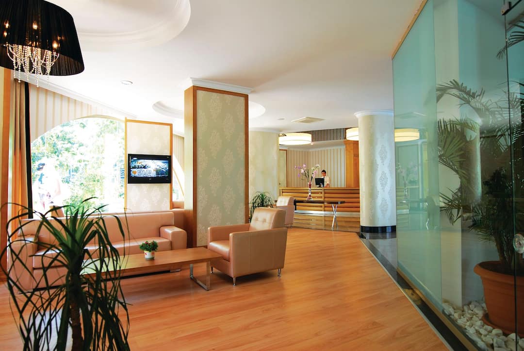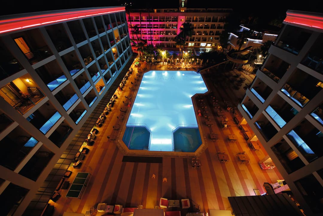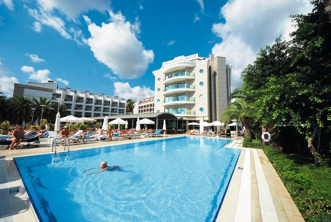 The Pasa Beach Hotel is located right on the promenade, just a few minutes’ walk to all the nearest bars, shops and restaurants. It has two main outdoor swimming pools, as well as kids’ pool, a sun terrace with sun loungers and parasols, and a number of bars – including a poolside snack bar and a terrace bar. The hotel itself is spacious and modern, with tasteful decor and comfortable, air-conditioned rooms. It’s less than three kilometres from the hotel to the resort centre, although all the important amenities are right on your doorstep already. If you’re in need of pampering, you’re in luck. There’s a Turkish bath and a sauna on-site, and you can book a range of beauty treatments to help you truly unwind.