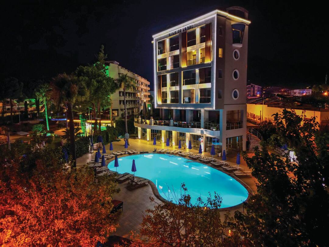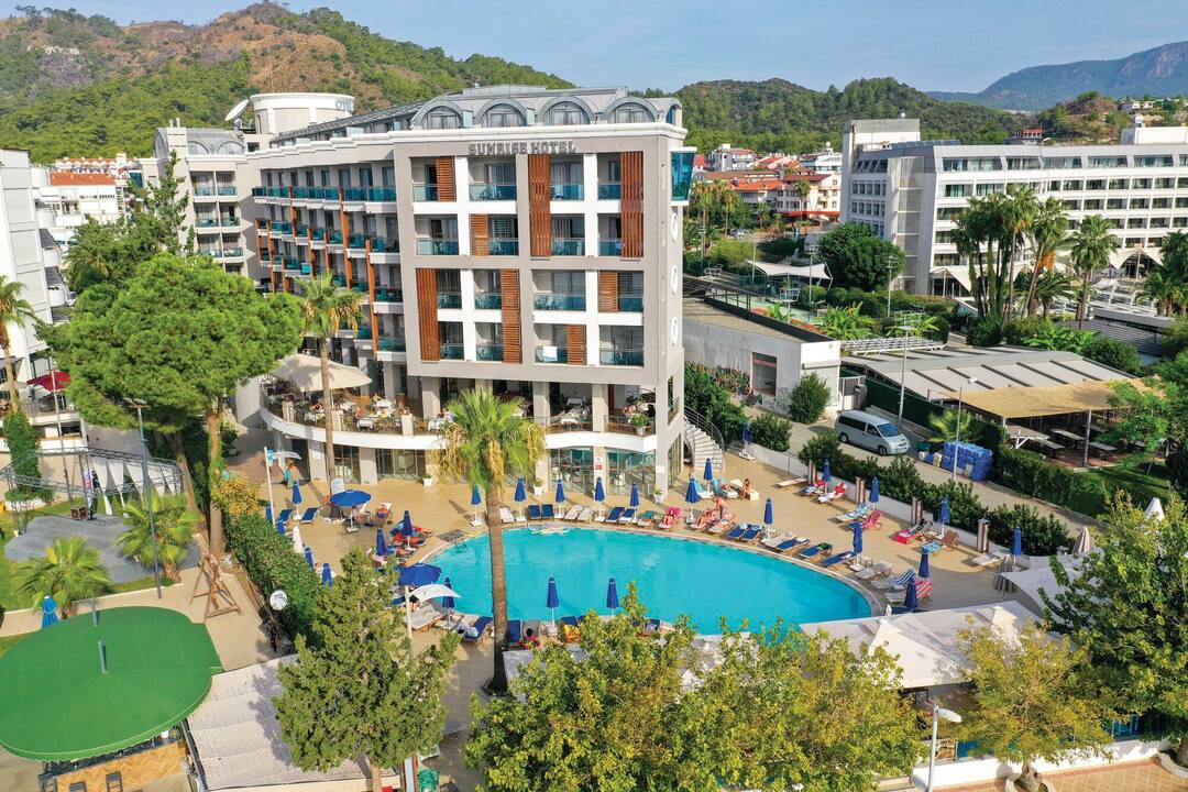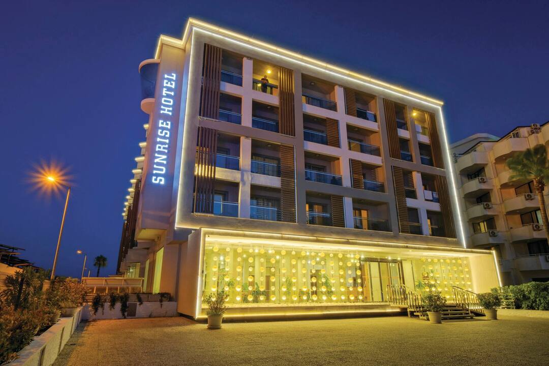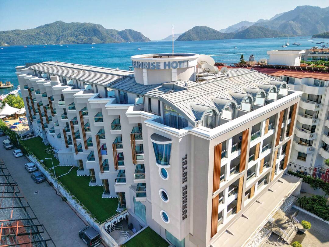 Sunrise Hotel is a four-star masterpiece. Built right onto its very own private beach (Uzan Yali Beach), just moments away from the centre of Marmaris. The seafront and ocean waves can be seen directly from the pool which has an unobstructed view of the horizon and the hilly coastline as its slopes around the rest of the country. Marmaris is an increasingly popular destination for holidays to Turkey and a stay at Sunrise Hotel places guests right next to the lively central excitement while remaining close enough to the peace and tranquillity of the Turquoise Coast.