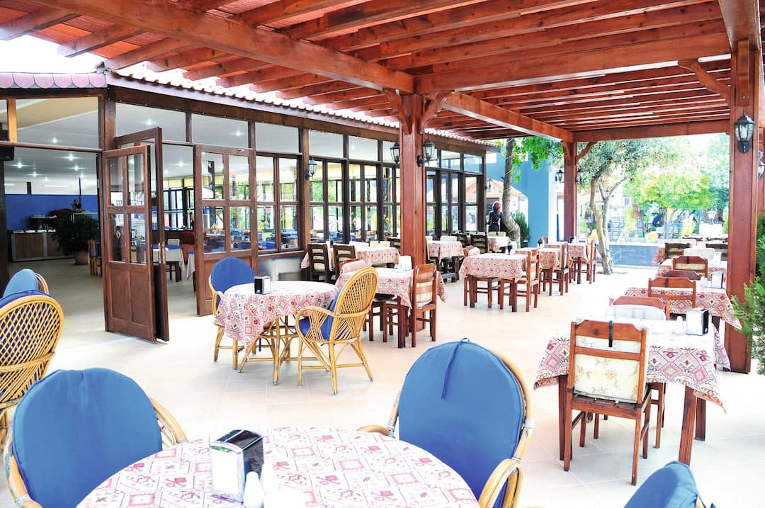 By day, a snack bar by the pool provides food and refreshments, and you can tuck into larger buffet spreads in the main restaurant, which mixes traditional Turkish cuisine with international flavours.