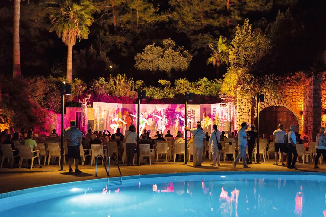 This is your rural retreat in the sun. Montana Pine Resort Hotel is surrounded by tranquil scenery, beautiful gardens and stunning views. You have three pools to enjoy, as well as a paddling pool for children, a spa with a whirlpool and Turkish bath. The sports amenities are amazing, too. Choose from tennis, archery, table tennis, mini-golf and a gym to keep you fit and active. Delicious Turkish cuisine and international favourites are served at the buffet restaurant and you can keep yourself cool throughout the day with drinks from three bars and a café. Then settle in for an evening of live music and shows.