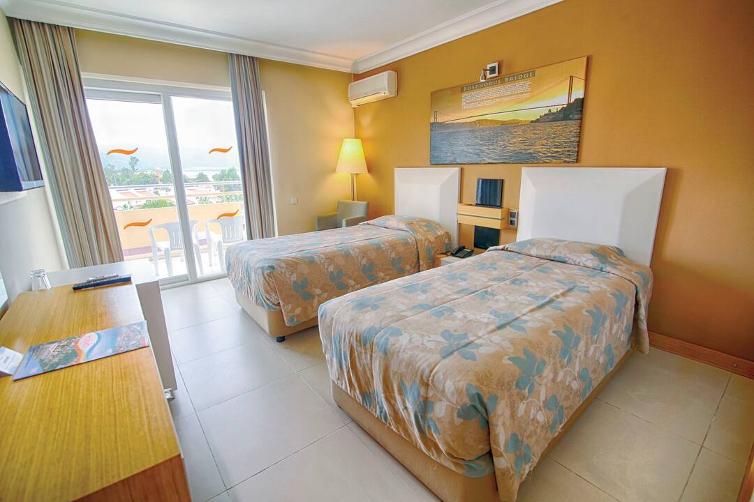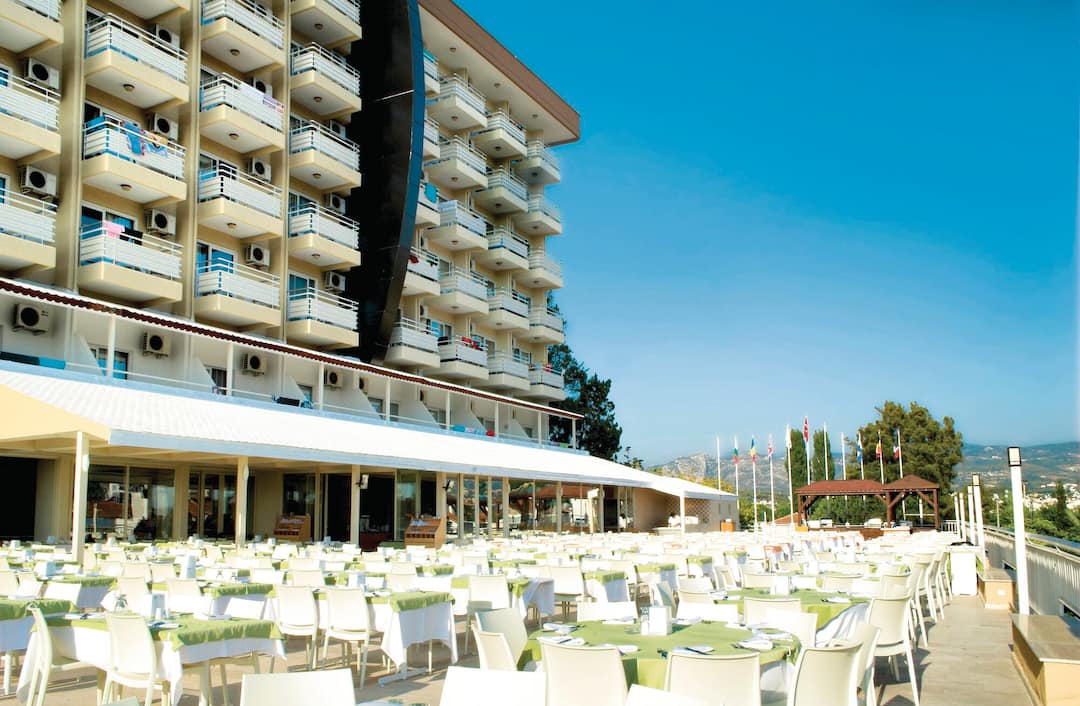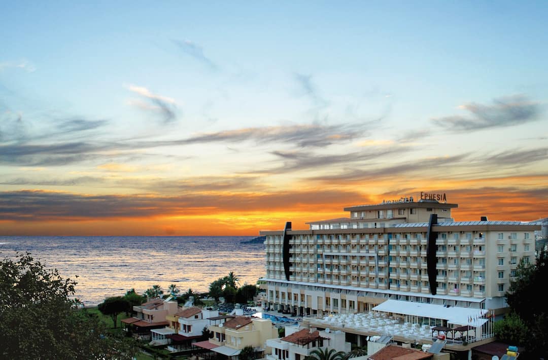 Ephesia Hotel is the ultimate family-friendly hotel and it’s sat directly on the beachfront offering a private beach experience every day of your holiday. What’s more, you’ll find a large pool on the complex, surrounded by sun loungers and parasols so you’ve got plenty of options for where to spend your days. There is a kids’ pool too, as well as an indoor pool and hot tub! On the food front, there certainly won’t be any rumbling stomachs at Ephesia Hotel. You’ve got the pick of a few places, including buffets and a la carte menus, plus a snack bar on the beach where you can tuck into delicious burgers, pizzas and chips. Adults can enjoy the many bars dotted around the hotel while the little ones get involved with one of the many activities, including painting, drawing and team games at the kids’ club. There’s an abundance of activities to keep everyone occupied during the day with beach watersports, darts, ping pong and even some arcades. A few times a week the whole family can enjoy entertainment in the evenings with a mix of live music and funny shows throughout the week.