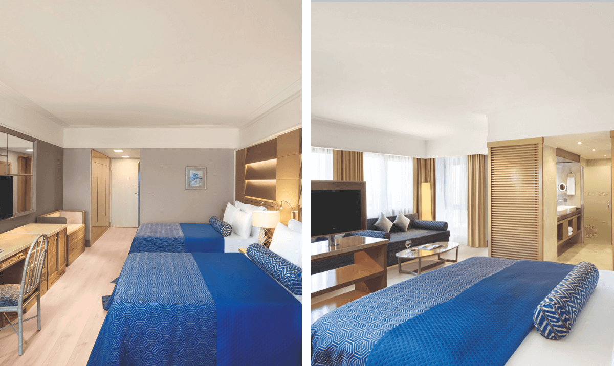 The restaurant here offers up a mix of buffet and à la carte options. The spreads here offer lots of Turkish and International options, while the menus line up Italian dishes and fresh seafood. Of the three bars in this hotel’s collection, the rooftop number is the favourite. You can kick back with a cocktail while you take in the views of the coast. Evening entertainment is quite chilled here, but you can often enjoy a spot of live music after dinner.