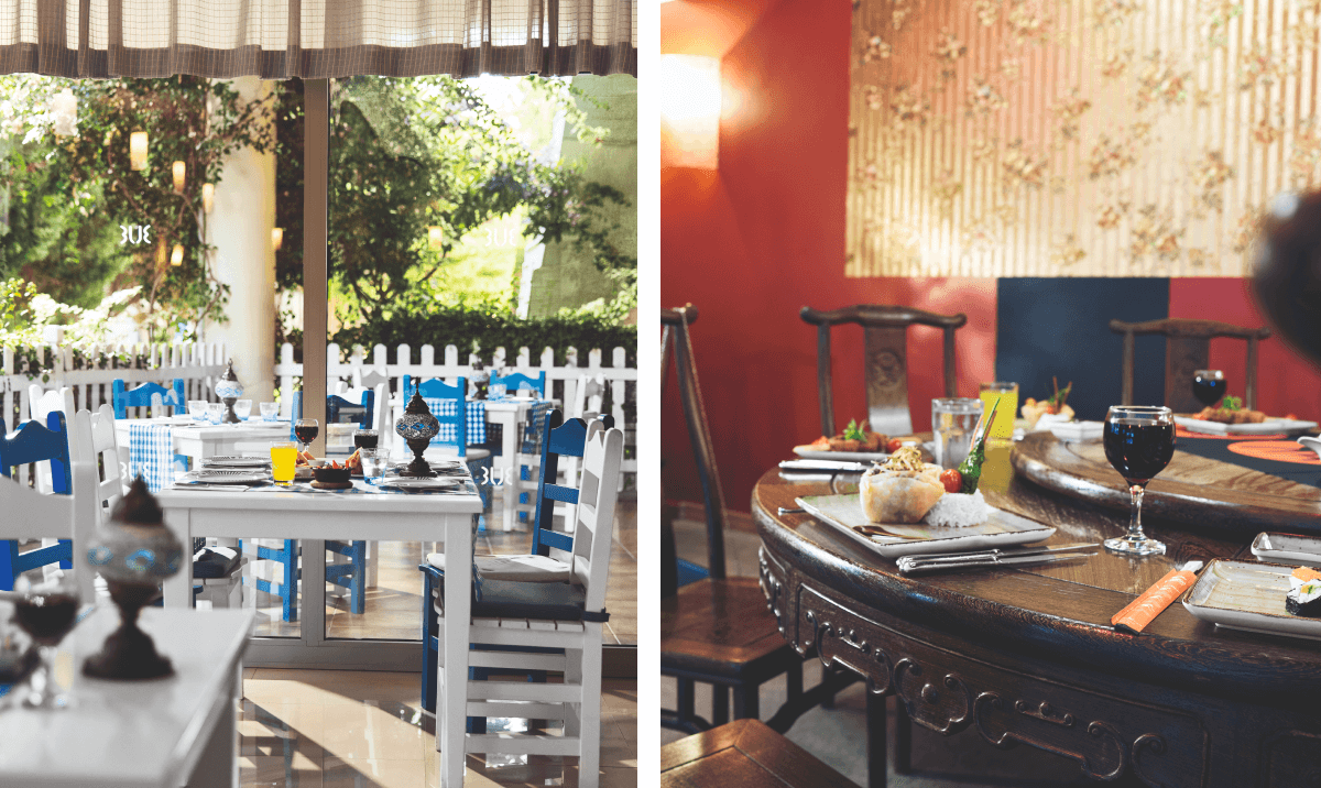 Levante, the fine-dining restaurant, specialises in Eastern Mediterranean dishes. As part of your All Inclusive package, you’ll be able to have 1 visit to this à la carte for free during your stay, per person. The main restaurant serves up high-quality, local recipes, which you can watch the chefs prepare at live-cooking stations. Along with regional and homemade dishes, you’ll find healthy options like vegetarian, vegan and low-carb.