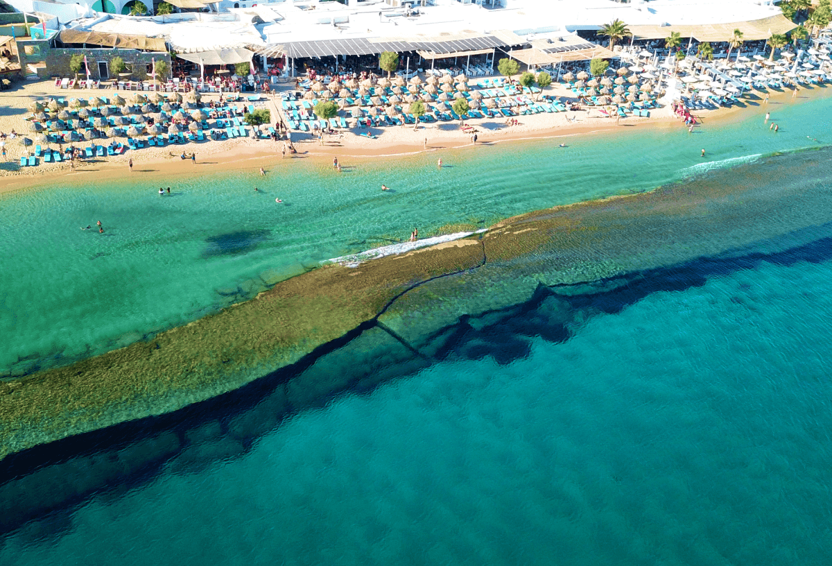 Besides being one of the island’s most popular beaches, it is also the longest beach you can sunbathe on during your holiday in Mykonos. And as the beach to be seen on during your time on the island due to its glamorous and cosmopolitan reputation, make sure you remember to pack your show-stopping swimsuit.