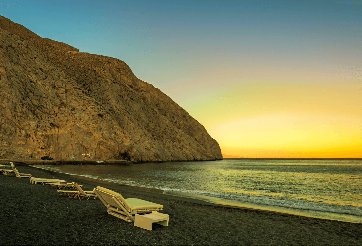 This beaches black sand may put a lot of people off visiting, but a break to Santorini wouldn’t be complete without visiting one of its best shorelines. Protected from the wind due to the Profitis Ilias Mountain which sits high above the north side of the water, this is a real suntrap.