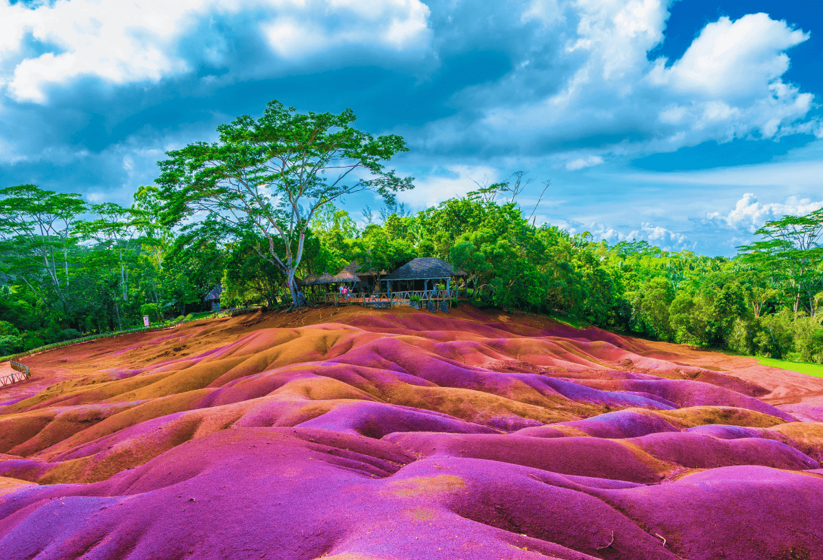 A 8.5-hectare national park is home to the geological phenomenon, which is said to be caused by slow decomposition of lava, or basalt, into clay minerals. The 7 Coloured Earths are believed to be around 600 million years old.