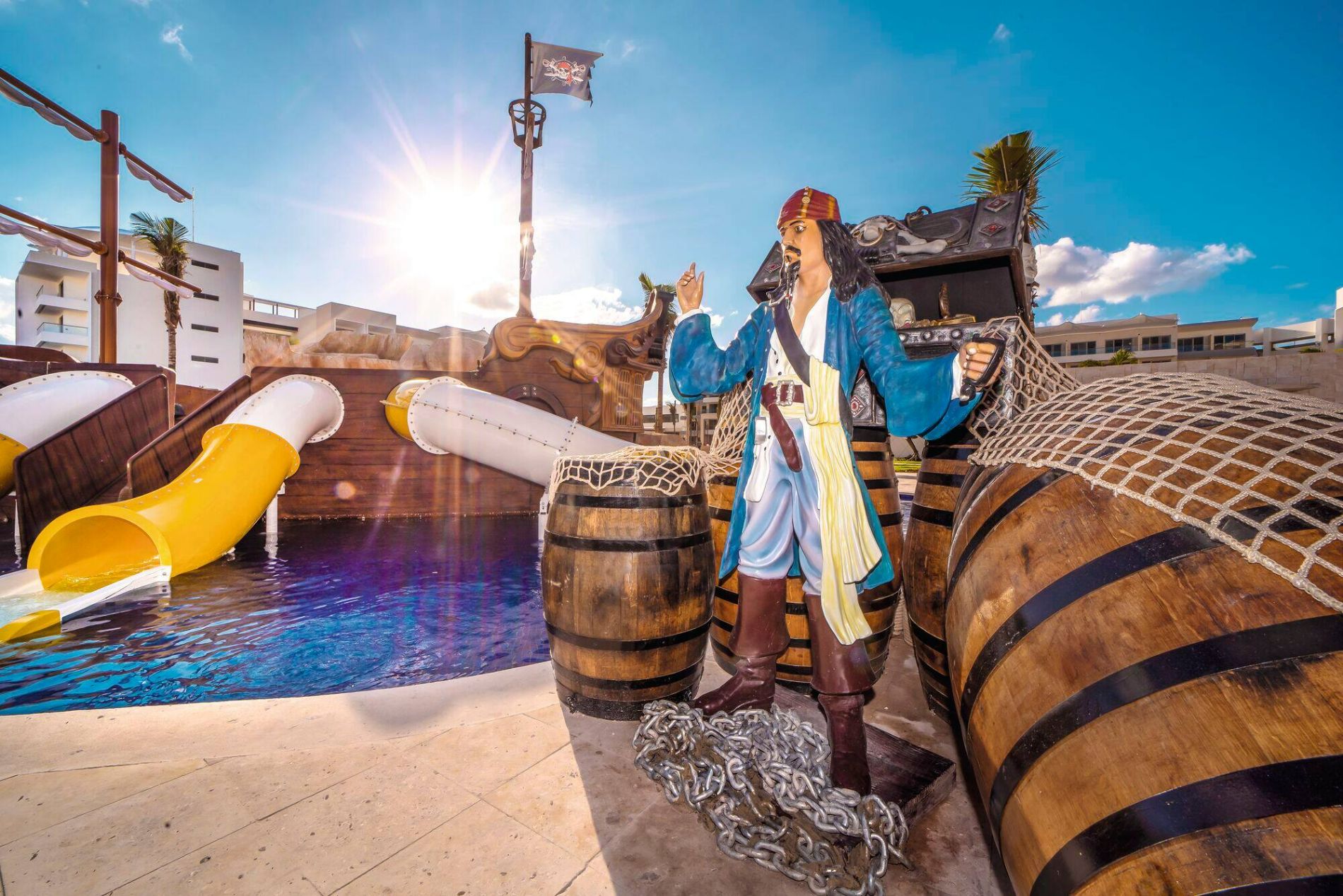 Another fantastic spot for waterpark lovers is Sandos Playacar. The on-site mini waterpark is stocked with twisting chutes for older children and knee-high slides for tots, plus fountains and tipping buckets. There’s also an adults only spot that has a swim up bar, and a fab family pool which hosts plenty of entertainment throughout the day.