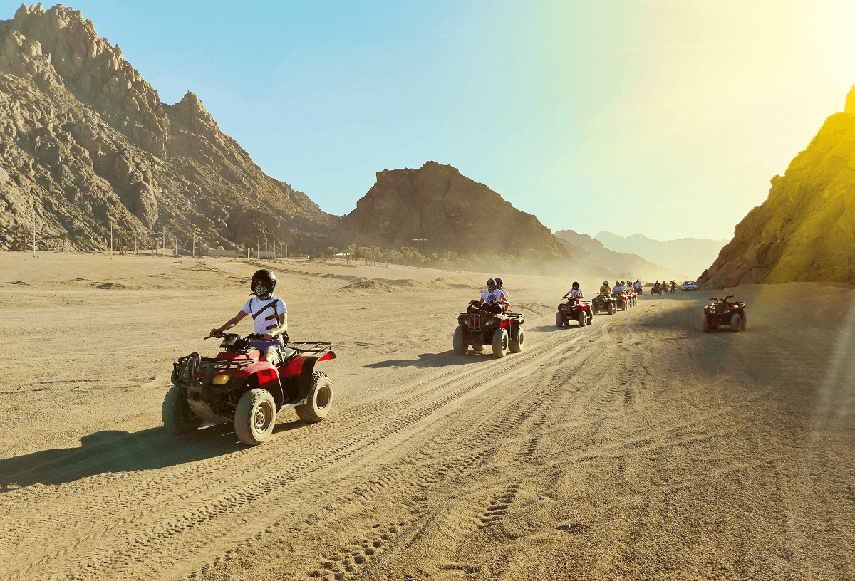 - Morning desert safari – Includes quad biking, 4×4 off-roading, a camel ride and a traditional Bedouin meal.
