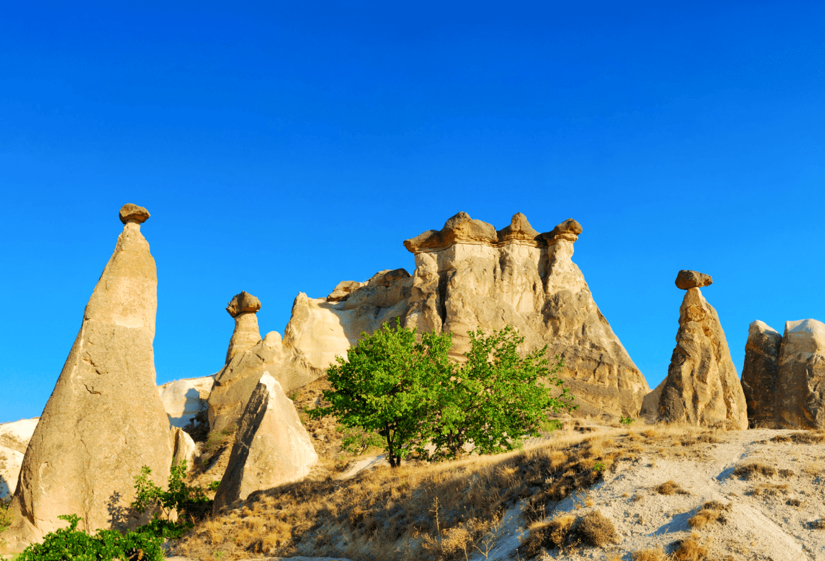 Another must-visit spot for otherworldly experiences is the extraordinary region of Cappadocia. It’s dotted with distinctive fairy chimneys and swooping rock valleys, which make for an incredible photo opp! Cappadocia is also known to have enchanting underground towns and rock carved churches. It really is a treat for the eyes!